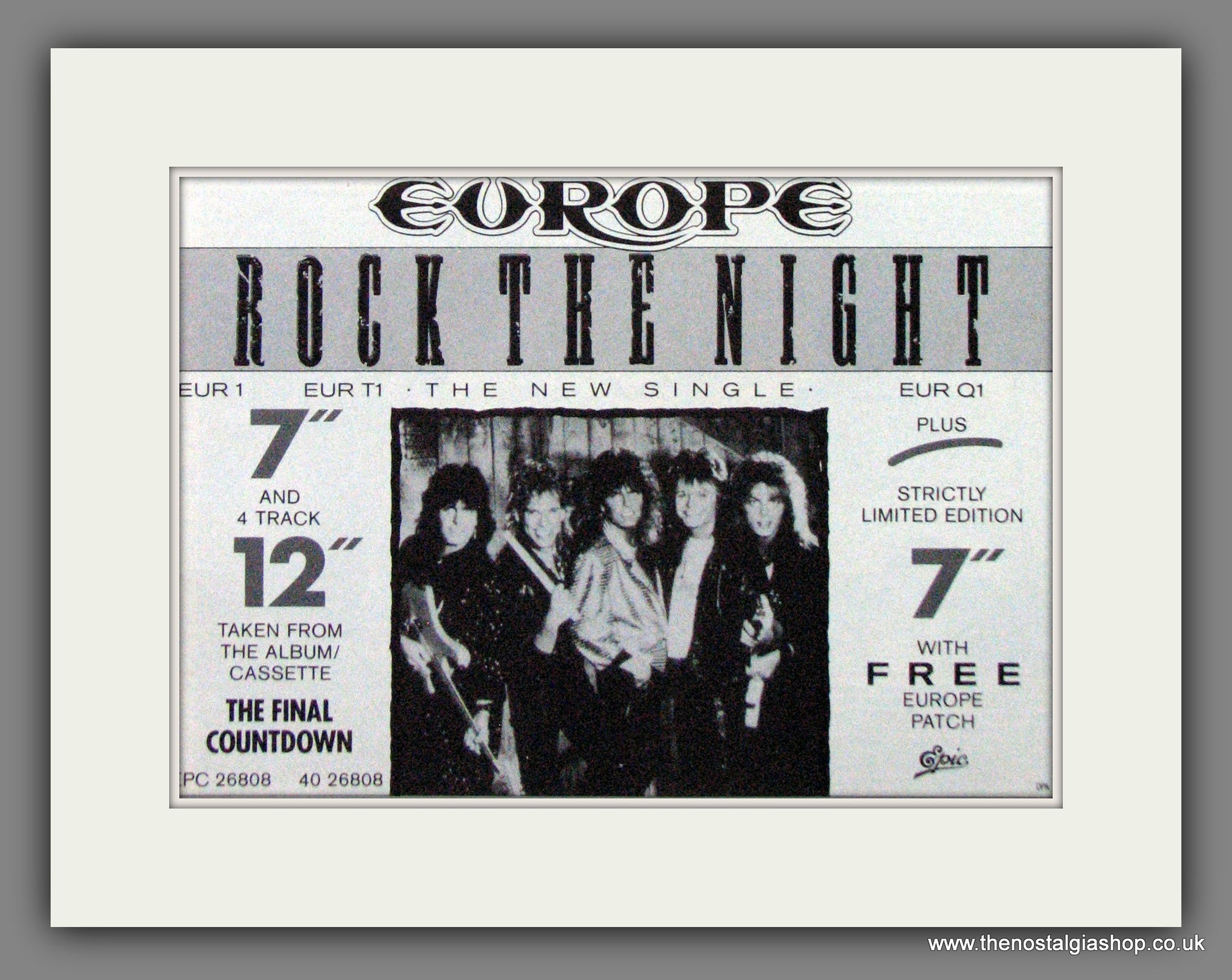 Europe, Rock The Night. Classic Original Vintage advert 1987. Presented in cream bevel cut mount with backing card and clear bag. Ready to fit in 12 x 10 inch frames. Want it framing? If so, buy this then go to Frames Available Category. Click to buy on the suitable frame and we will do the rest. All our adverts, unless clearly stated are Originals from the date shown. They make excellent pieces of wall art and stunning gifts. Many are rare and hard to find and once sold, may not be replaced. Remember you are buying a piece of history. Website watermark is not on original.