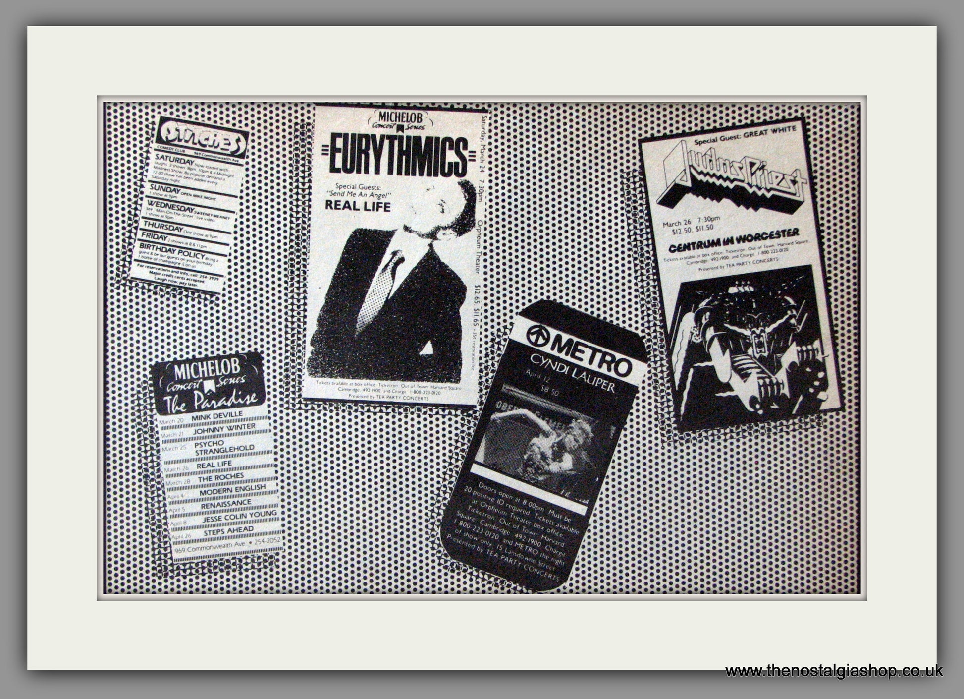 Eurythmics Real Life. Classic original advert 1984. Presented and Supplied in cream bevel cut mount with backing card and clear bag. Ready to fit in 14 x 11 inch frame. Want it framing? If so, buy this then go to Frames Available Category. Click to buy on the suitable frame and we will do the rest. All our adverts, unless clearly stated are Originals from the date shown. They make excellent pieces of wall art and stunning gifts. Many are rare and hard to find and once sold, may not be replaced. Remember you are buying a piece of history. Website watermark is not on original.