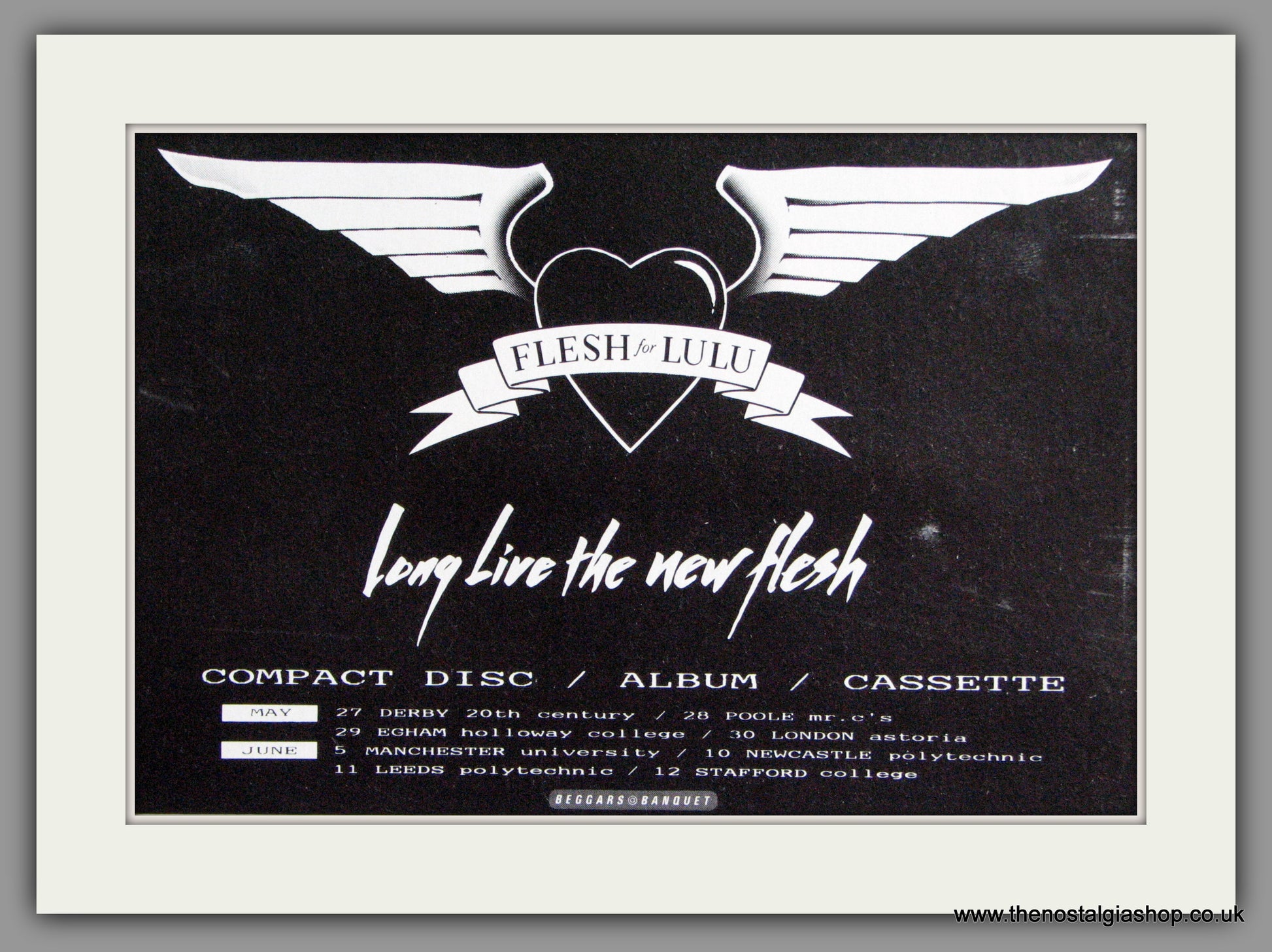 Flesh For Lulu. Vintage Advert. Classic original advert 1987. Presented in cream bevel cut mount with backing card and display bag. Ready to fit in 12 x 10 inch frame. Want it framing? If so, buy this then go to Frames Available Category. Click to buy on the suitable frame and we will do the rest. All our adverts, unless clearly stated are Originals from the date shown. They make excellent pieces of wall art and stunning gifts. Many are rare and hard to find and once sold, may not be replaced. Remember you are buying a piece of history. Website watermark is not on original.