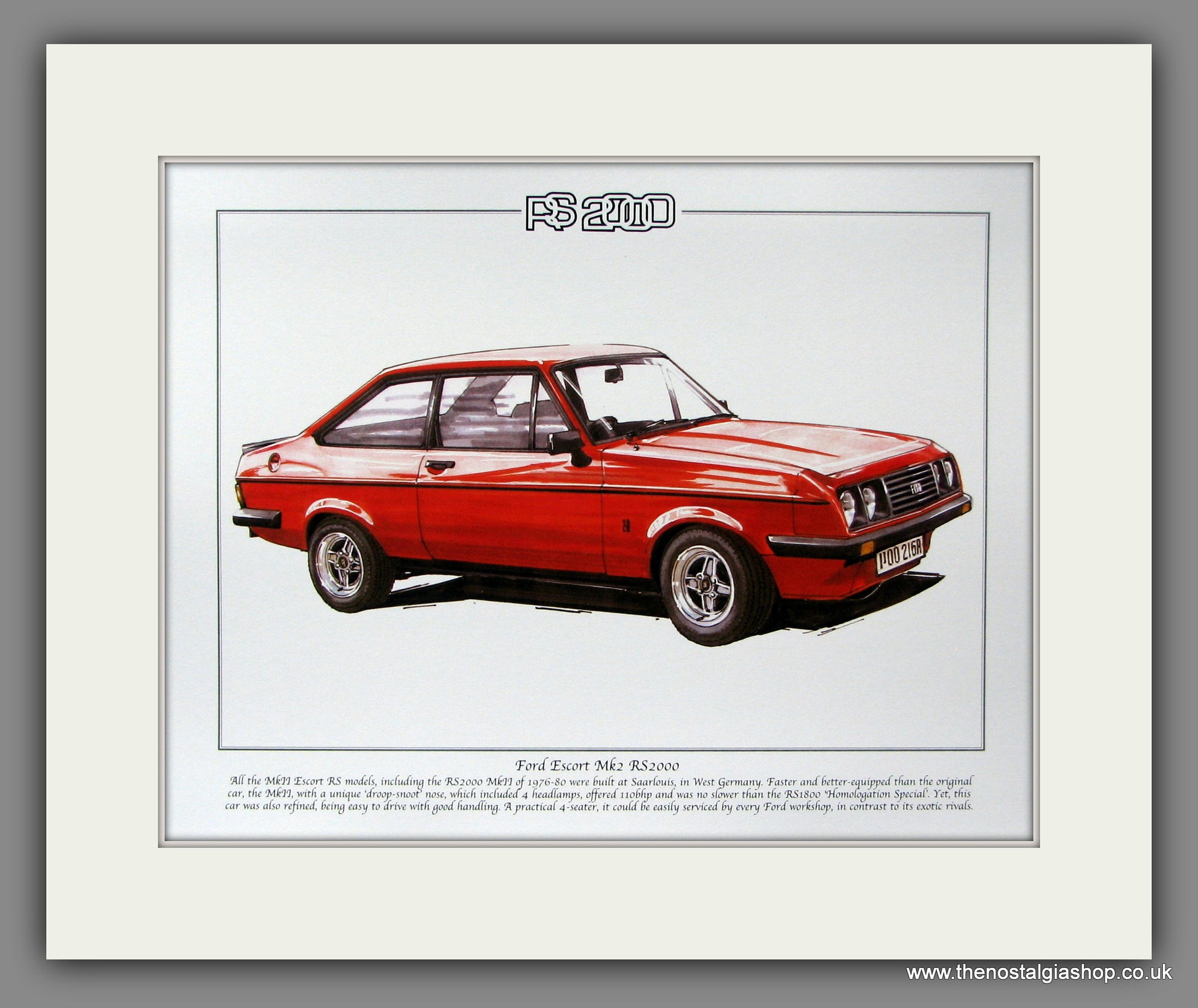 Ford Escort Mk II RS2000. Mounted Print.