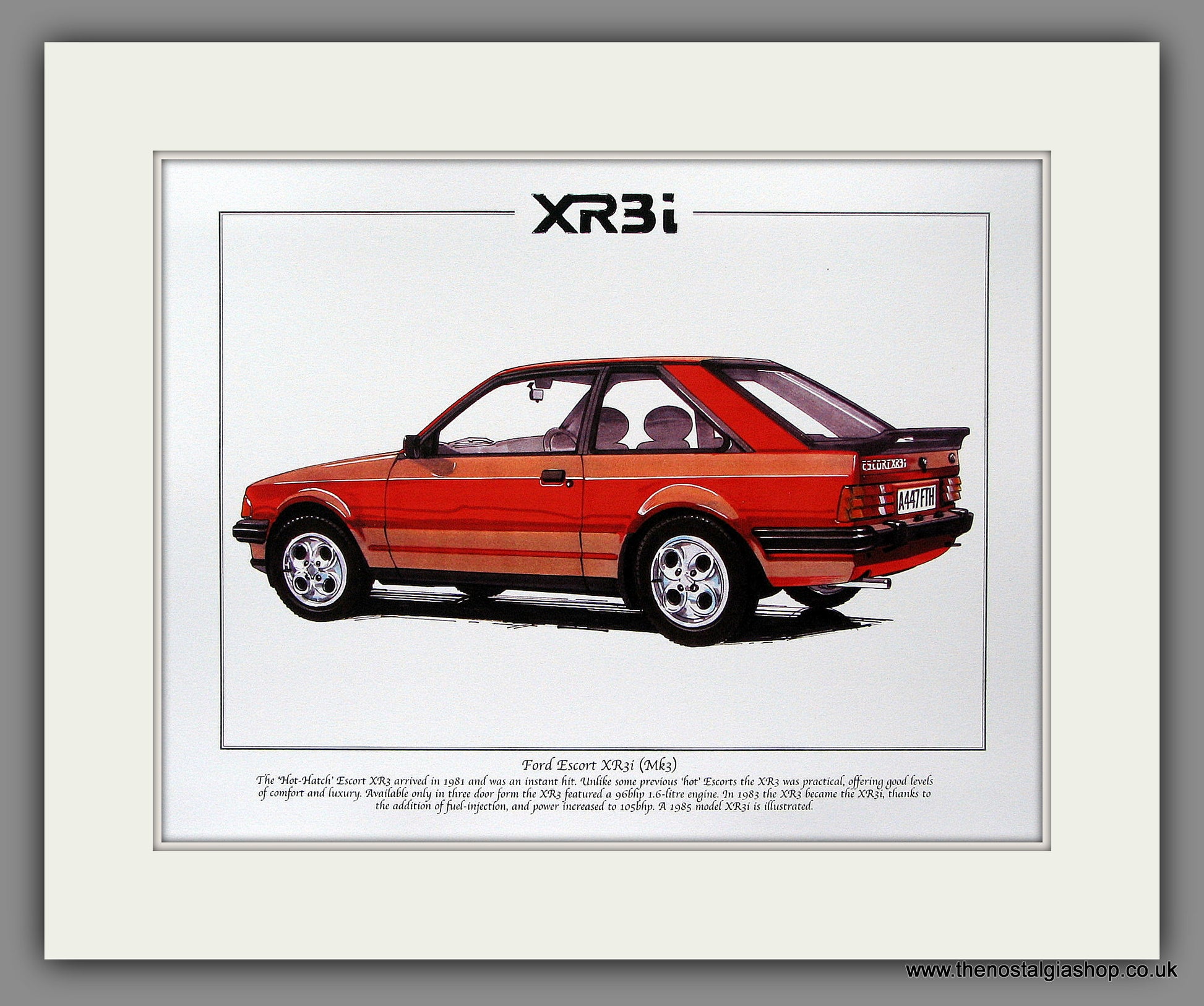 Ford Escort Mk 3 XR3i. Beautifully Illustrated print with detailed description of the vehicle. Presented and Supplied in a cream bevel cut mount with backing board and clear bag. The perfect gift. Size of the mount is 14 x 11 inches, it is ready to drop straight in to a frame. Framing option available on this print, Add this print to your shopping basket, then go to 'Frames Available" category, Click to buy the suitable frame. We will frame and post your choice. Free UK postage on orders over £20.00. Website watermarks are not present on the prints. Ford Prints, Ford Art, Classic Fords, Fast Fords, Ford pictures. Ford Clubs.