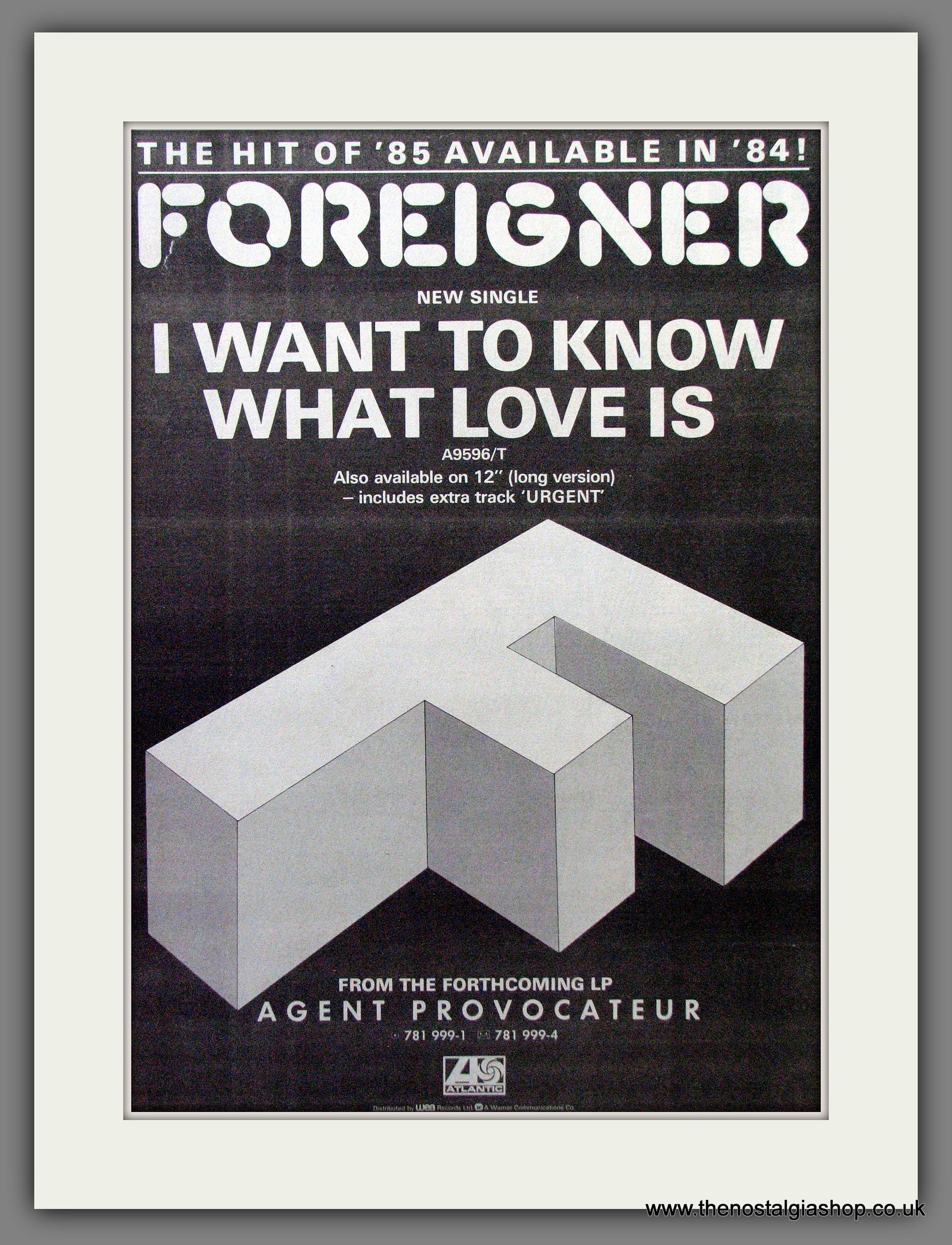 Foreigner I Want To Know What Love Is. Original Advert 1984 (ref AD13030)