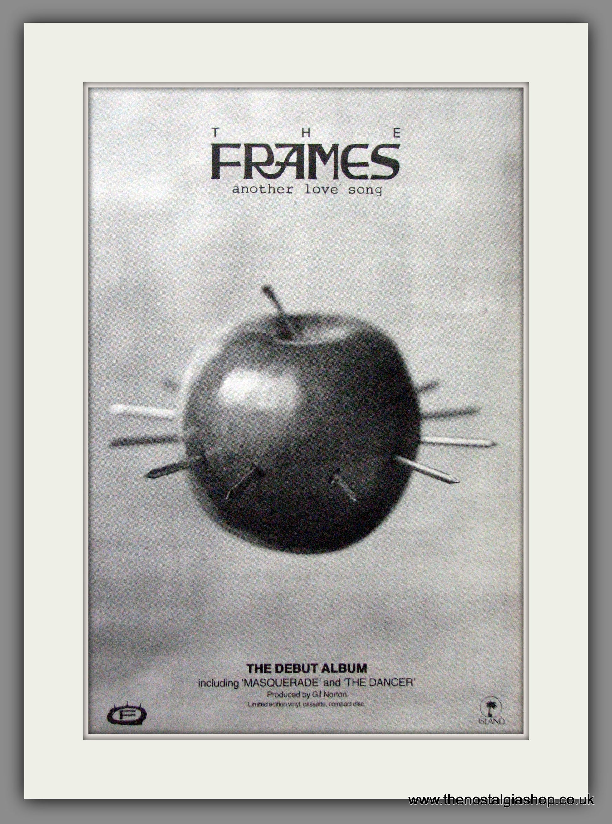 The Frames, Debut Album. Another Love Song. Classic original advert 1992. Presented and Supplied in a cream bevel cut mount with backing card and clear bag. Ready to fit in 14 x 11 inch frame. Want it framing? If so, buy this then go to Frames Available Category. Click to buy on the suitable frame and we will do the rest. All our adverts, unless clearly stated are Originals from the date shown. They make excellent pieces of wall art and stunning gifts. Many are rare and hard to find and once sold, may not be replaced. Remember you are buying a piece of history. Website watermark is not on original.