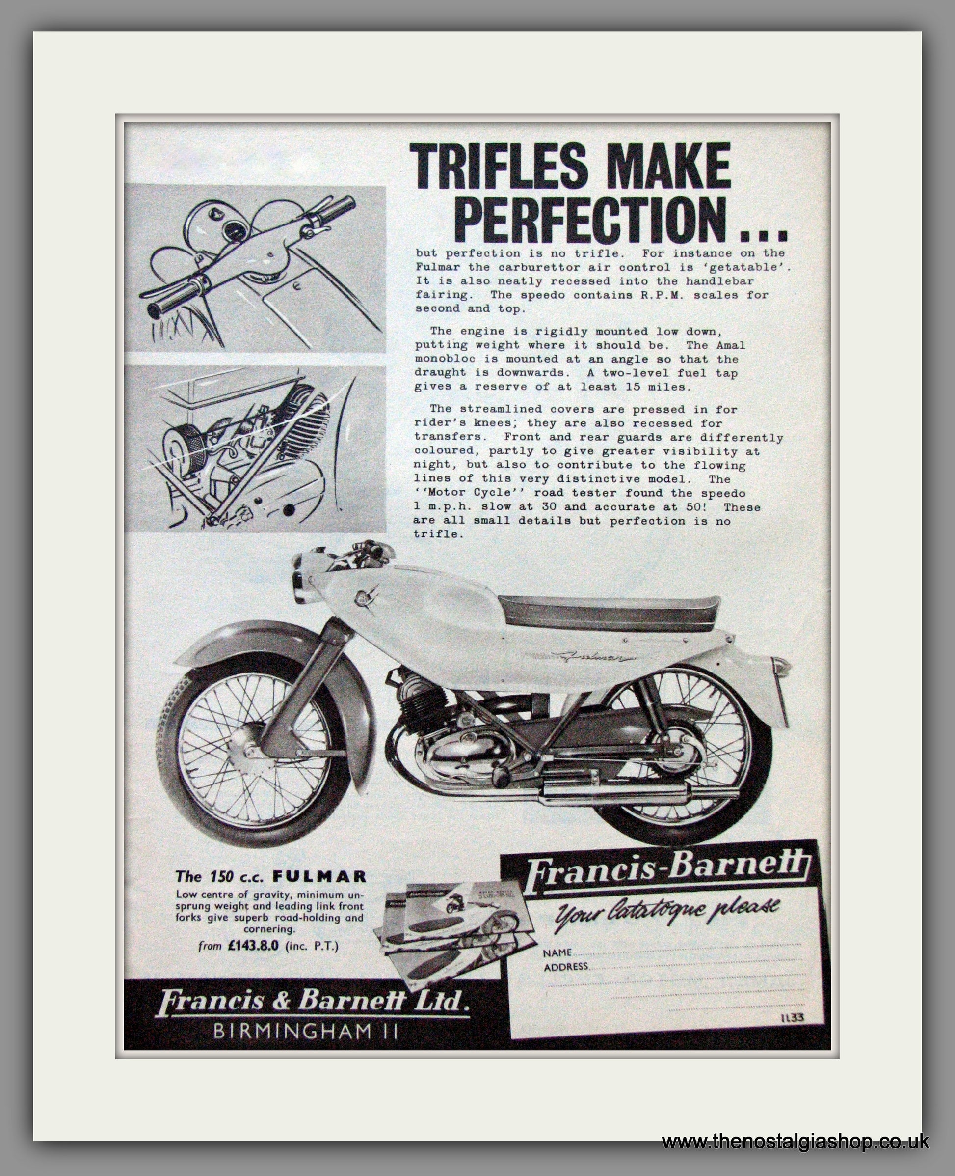 Francis-Barnett Fulmar 150cc. Original Advert 1962 (ref AD53027)