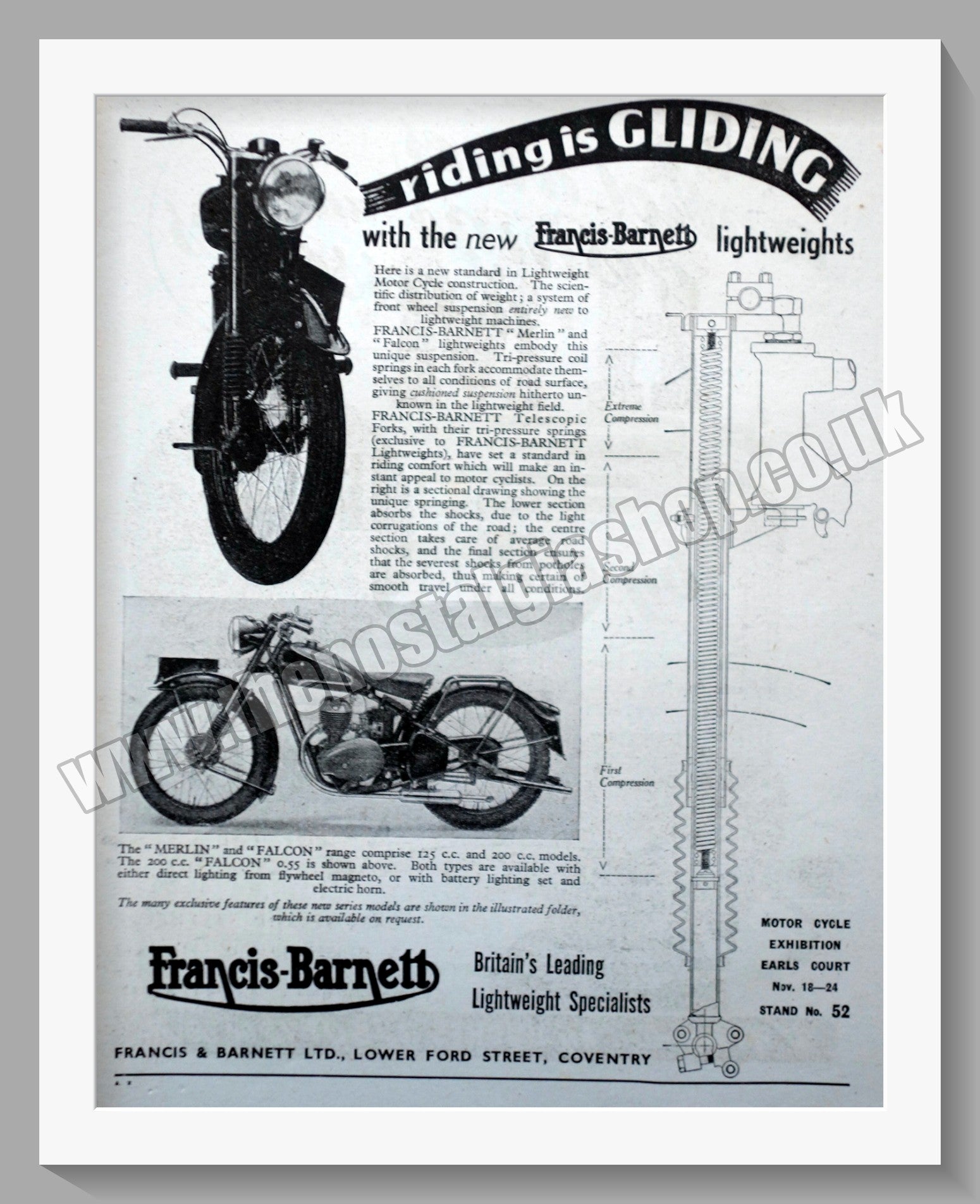 Francis-Barnett Lightweight Motorcycles. Original Advert 1948 (ref AD58578)