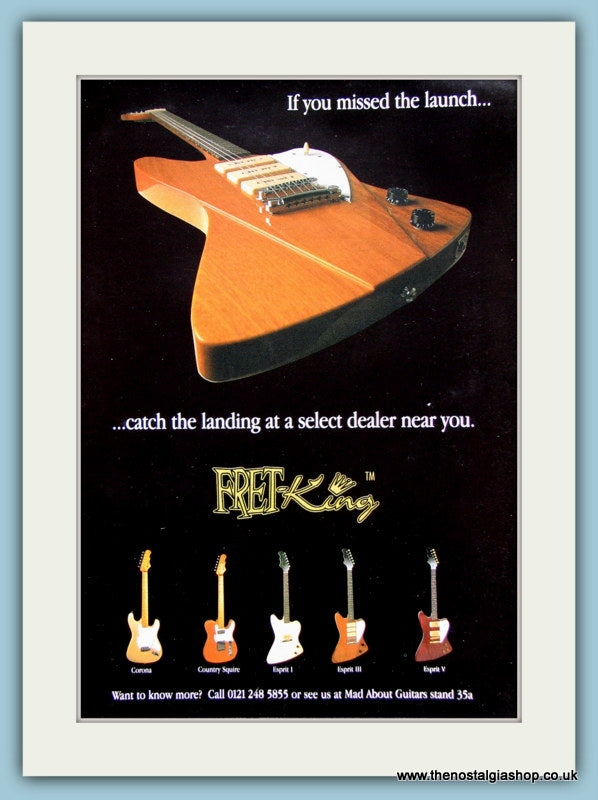 Fret-King Guitars. Guitar range advert. Classic original advert 2004. Professionally sealed and presented in cream bevel cut mount with backing card. Ready to fit in 14 x 11 inch frame. Want it framing? If so, buy this then go to Frames Available Catagory. Click to buy on the suitable frame and we will do the rest. All our adverts, unless clearly stated are Originals from the date shown. They make excellent pieces of wall art and stunning gifts. Many are rare and hard to find and once sold, may not be replaced. Remember you are buying a piece of history. Website watermark is not on original.