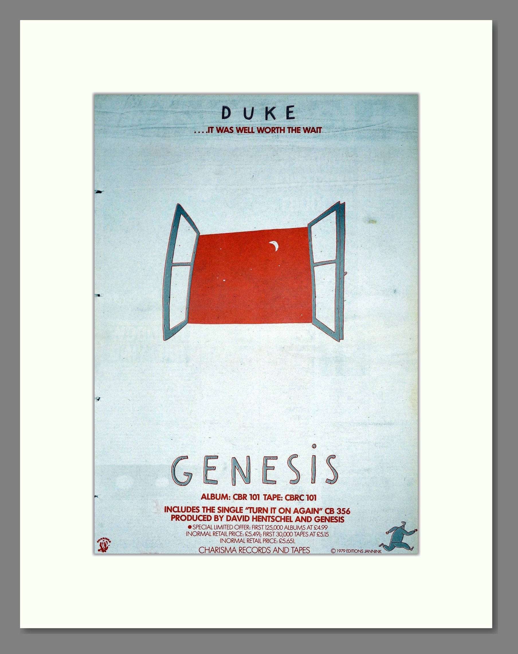 Genesis - Duke. Vintage Advert. This is a large classic original advert from 1980. Presented and supplied in a cream bevel cut mount with backing card and clear bag. Ready to fit in a 20 x 16 inches frame. The mounted advert will be posted via courier and well packed - protected with a sheet of hardboard to keep it rigid. Any questions or enquiries, please get in touch, we are here to help! All our adverts, unless clearly stated are originals from the date shown. They make excellent pieces of wall art and stunning gifts. Many are rare and hard to find and once sold, may not be replaced. Remember you are buying a piece of history. Website watermark is not on original.