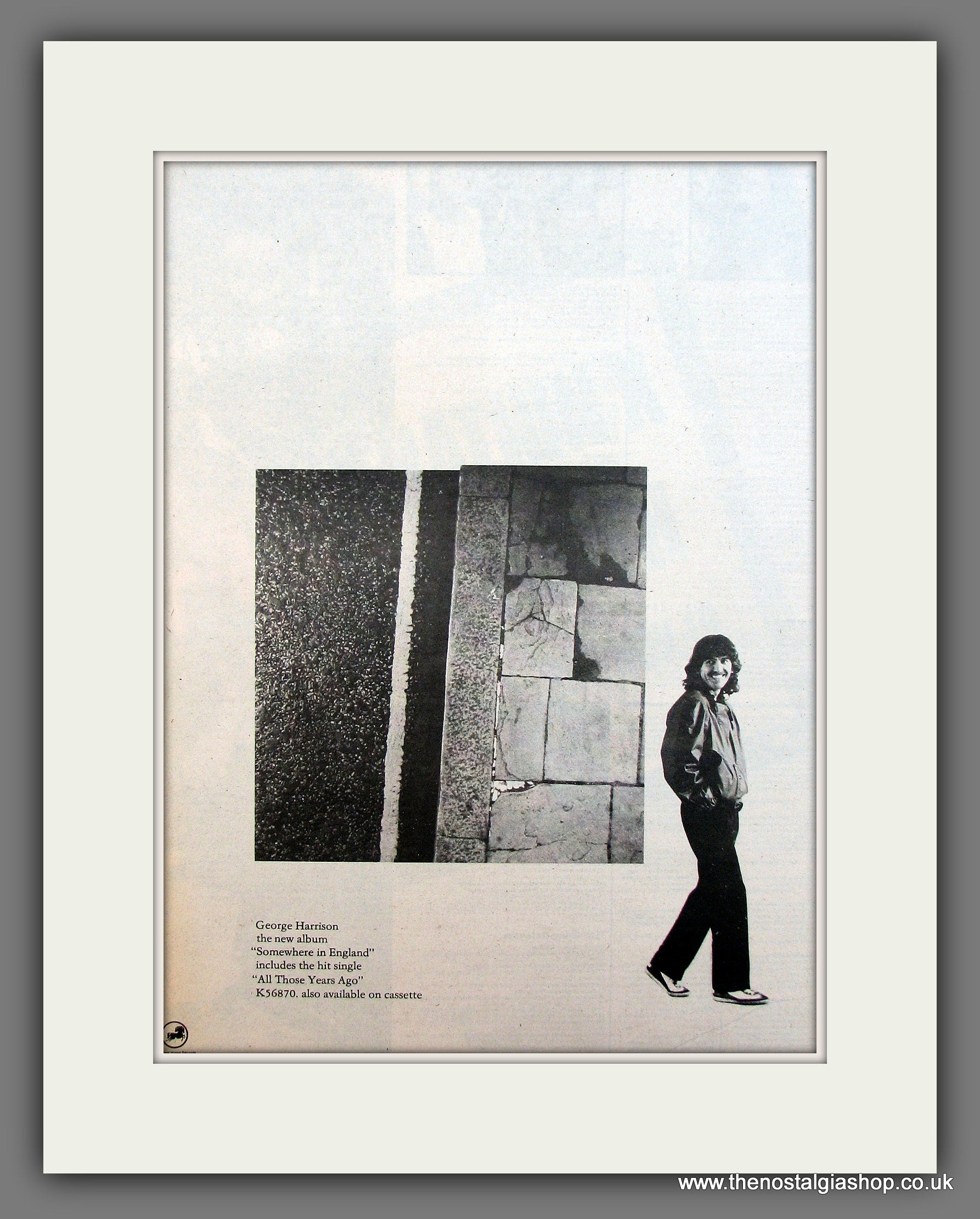 George Harrison Somewhere In England. This is a large classic Original advert 1981. Presented in cream bevel cut mount with backing card and clear bag. Ready to fit in 20 x 16 inch frame. The mounted advert will be posted via courier and well packed - protected with a sheet of hardboard to keep it rigid. Any questions or inquiries, please get in touch, we are here to help! All our adverts, unless clearly stated are Originals from the date shown. They make excellent pieces of wall art and stunning gifts. Many are rare and hard to find and once sold, may not be replaced. Remember you are buying a piece of history. Website watermark is not on original.