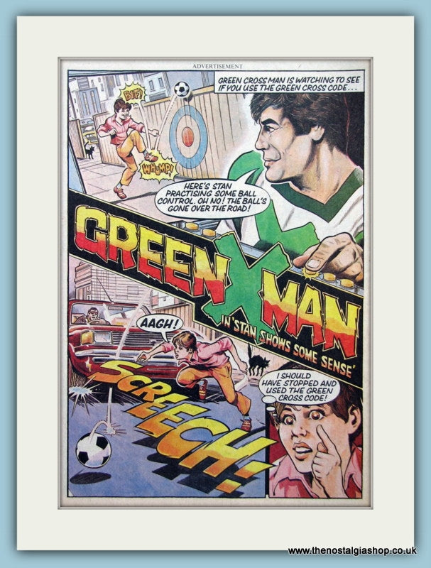Green Cross Man. Stan shows some sense. Classic original advert 1980. Presented in cream bevel cut mount with backing card and clear bag. Ready to fit in 14 x 11 inch frame. Want it framing? If so, buy this then go to Frames Available Category. Click to buy on the suitable frame and we will do the rest. All our adverts, unless clearly stated are Originals from the date shown They make excellent pieces of wall art and stunning gifts. Many are rare and hard to find and once sold, may not be replaced. Remember you are buying a piece of history. Website watermark is not on original.