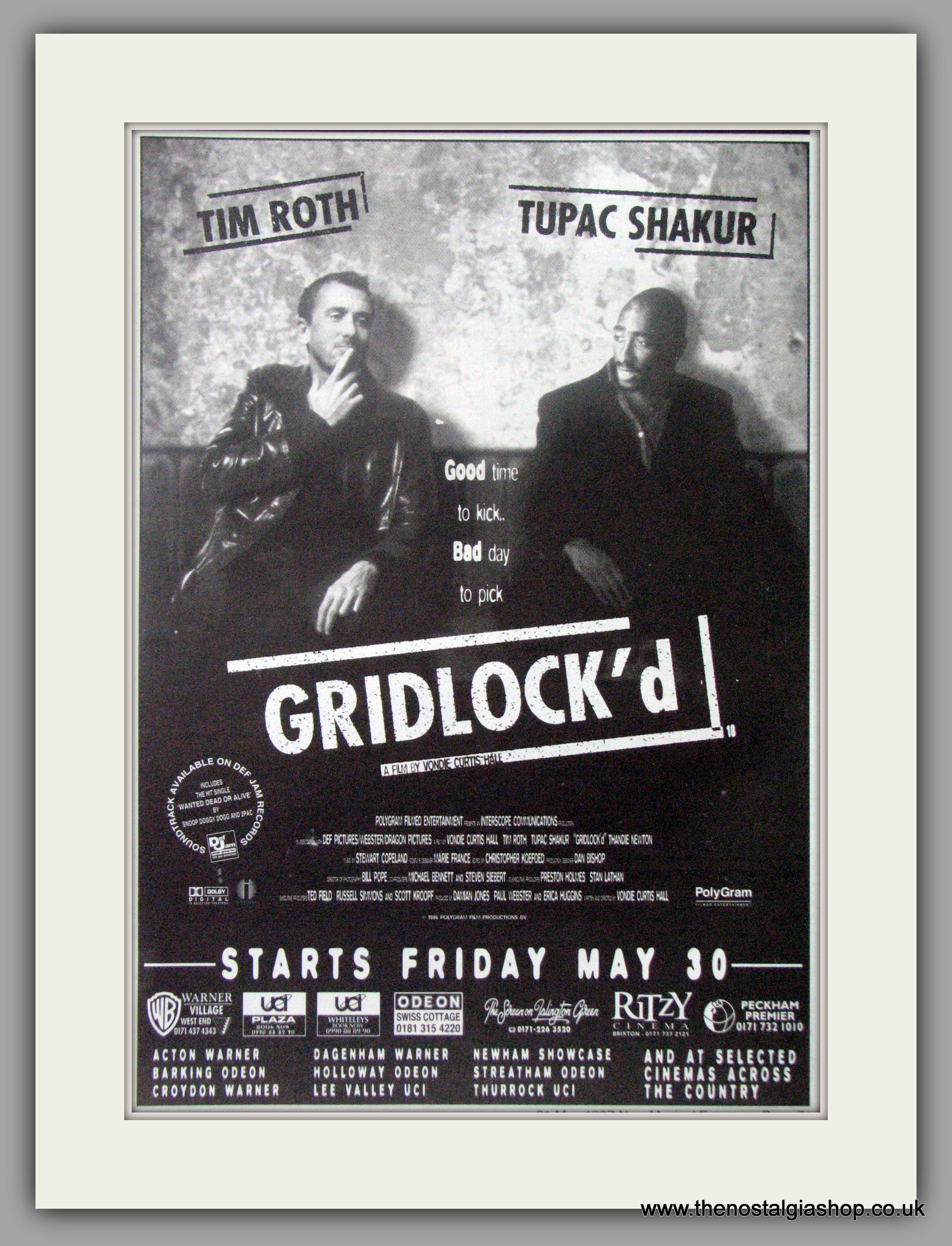 Gridlock'd-Tim Roth, Tupac Shakur. Original Advert 1997. Presented in cream bevel cut mount with backing card. Ready to fit in 14 x 11 inch frame. Want it framing? If so, buy this then go to Frames Available Category. Click to buy on the suitable frame and we will do the rest. All our adverts, unless clearly stated are Originals from the date shown. They make excellent pieces of wall art and stunning gifts. Many are rare and hard to find and once sold, may not be replaced. Remember you are buying a piece of history. Website watermark is not on original.