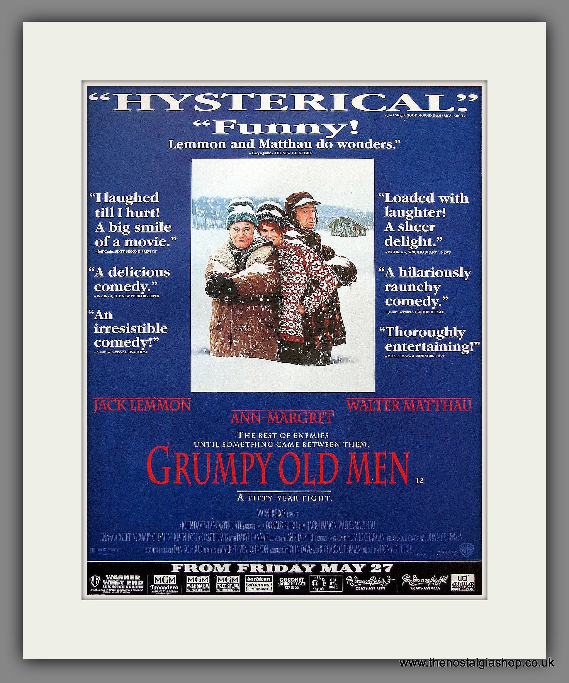 Grumpy Old Men. 1994 Classic Original Advert. Presented and supplied in a cream bevel cut mount with backing card and clear bag. Ready to fit in 14 x 11 inch frame. Want it framing? If so, buy this then go to Frames Available Category. Click to buy on the suitable frame and we will do the rest. All our adverts, unless clearly stated are Originals from the date shown. They make excellent pieces of wall art and stunning gifts. Many are rare and hard to find and once sold, may not be replaced. Remember you are buying a piece of history. Website watermark is not on original.