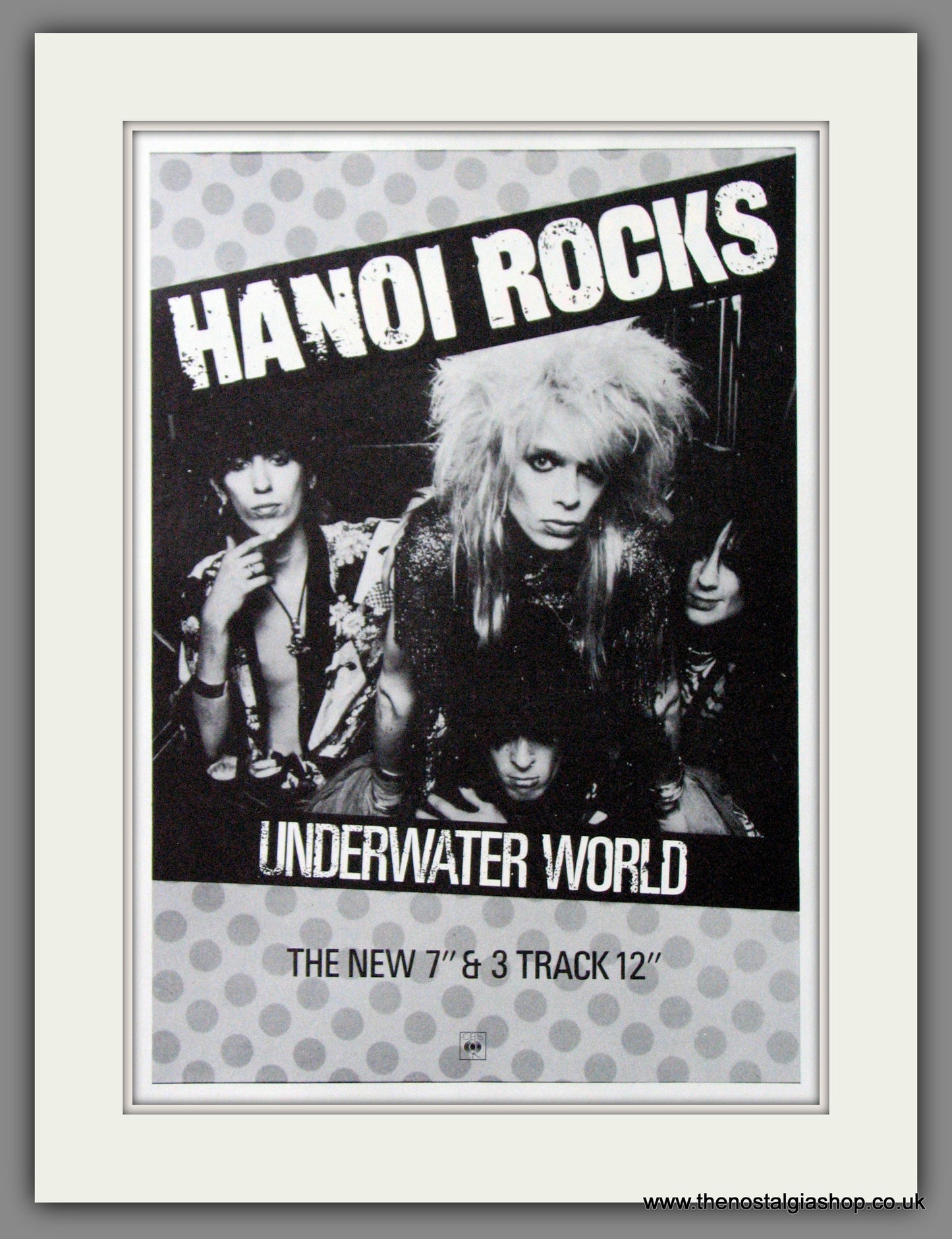 Hanoi Rocks. Underwater World. Classic original advert 1984. Presented and Supplied in a cream bevel cut mount with backing card and clear bag. Ready to fit in 14 x 11 inch frame. All our adverts, unless clearly stated are Originals from the date shown. They make excellent pieces of wall art and stunning gifts. Many are rare and hard to find and once sold, may not be replaced. Remember you are buying a piece of history. Website watermark is not on original.