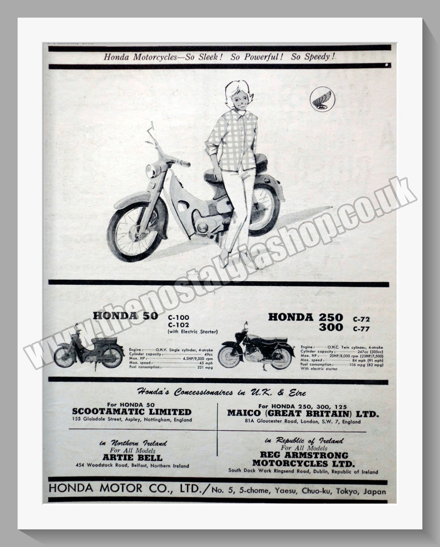 Honda 50, 250,300 Motorcycles. Original advert (ref AD58156)