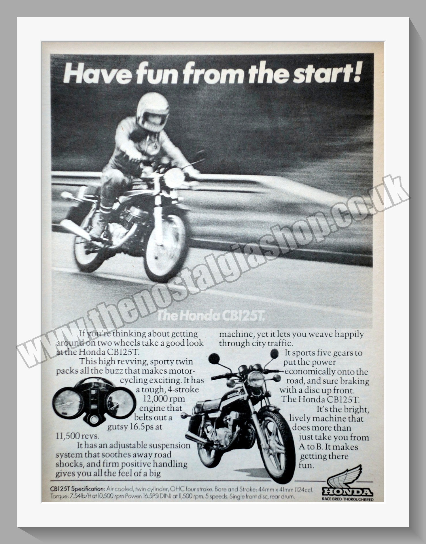 Honda CB125T Motorcycle. 1979 Original advert (ref AD58243)