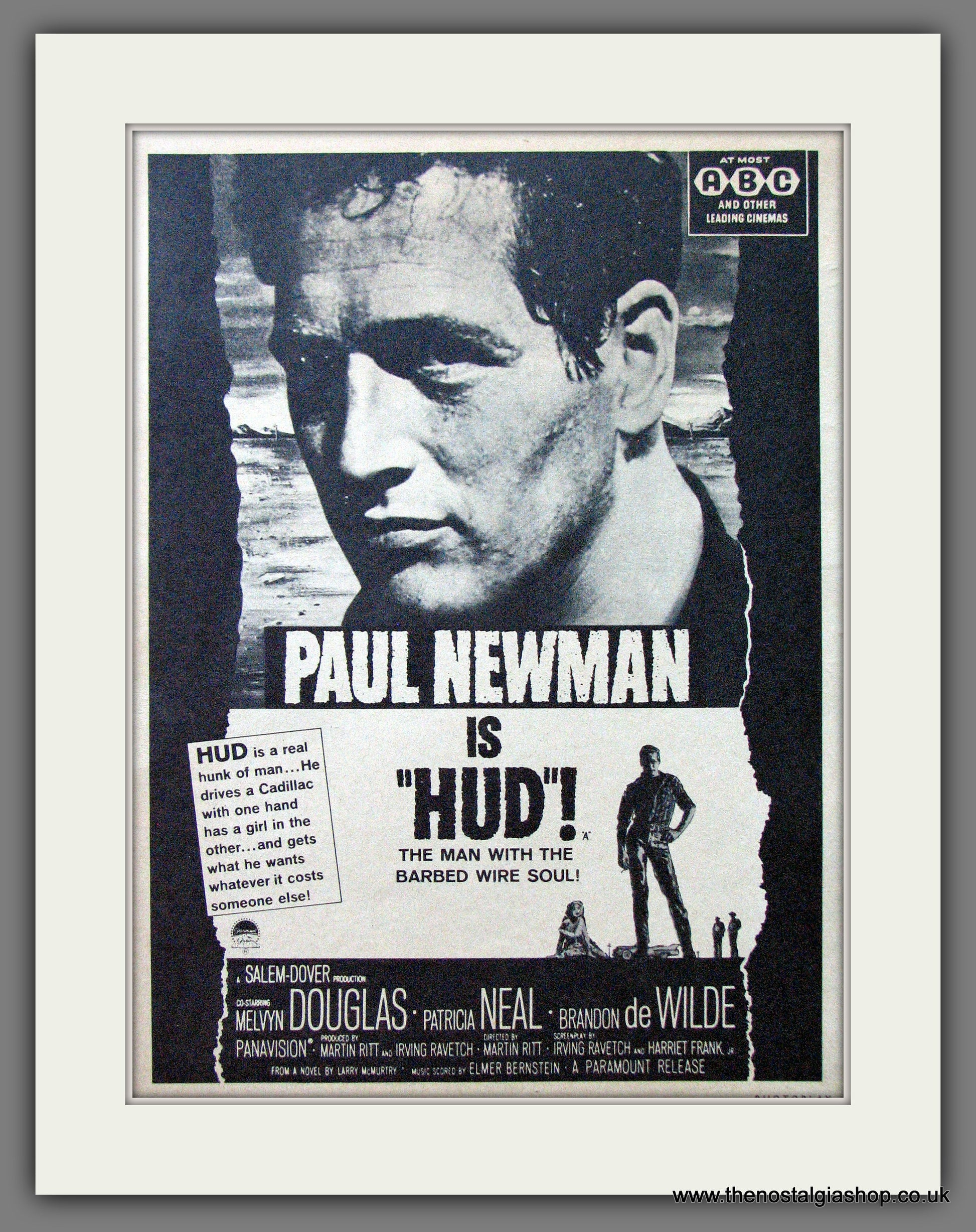Hud. Paul Newman. Melvyn Douglas, Patricia Neal. Vintage Advert. Classic Original advert 1963. Presented and Supplied in a cream bevel cut mount with backing card and display bag. Ready to fit in 14 x 11 inch frame. Want it framing? If so, buy this then go to Frames Available Category. Click to buy on the suitable frame and we will do the rest. All our adverts, unless clearly stated are Originals from the date shown. They make excellent pieces of wall art and stunning gifts. Many are rare and hard to find and once sold, may not be replaced. Remember you are buying a piece of history. Website watermark is not on original.