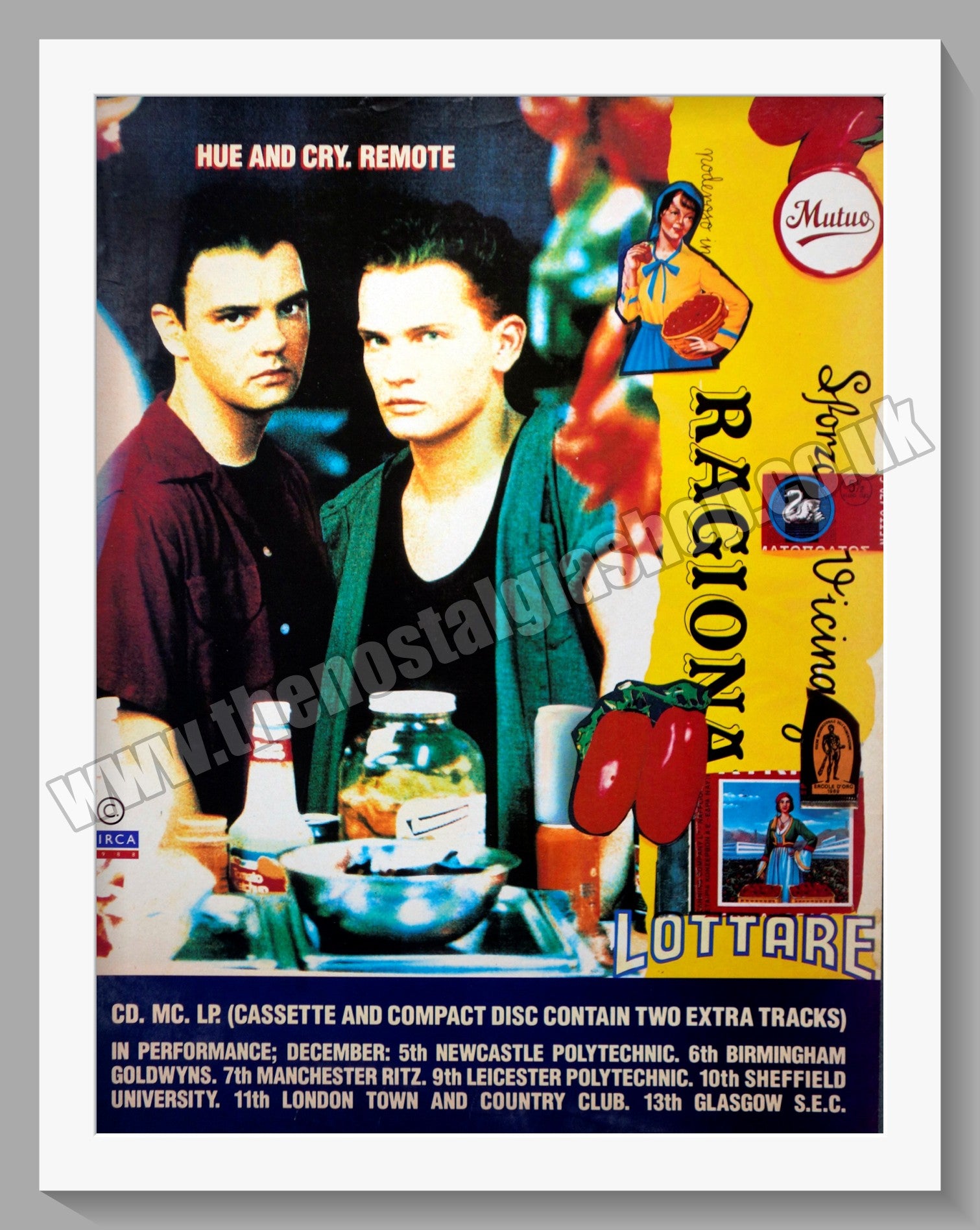 Hue & Cry. Remote. Vintage Advert. Original advert 1989. Presented and Supplied in a cream bevel cut mount with backing card and clear bag. Ready to fit in 14 x 11 inch frame. The mounted advert will be posted via courier and well packed - protected with a sheet of hardboard to keep it rigid. Any questions or inquiries, please get in touch, we are here to help! All our adverts, unless clearly stated are Originals from the date shown. They make excellent pieces of wall art and stunning gifts. Many are rare and hard to find and once sold, may not be replaced. Remember you are buying a piece of history. Website watermark is not on original.