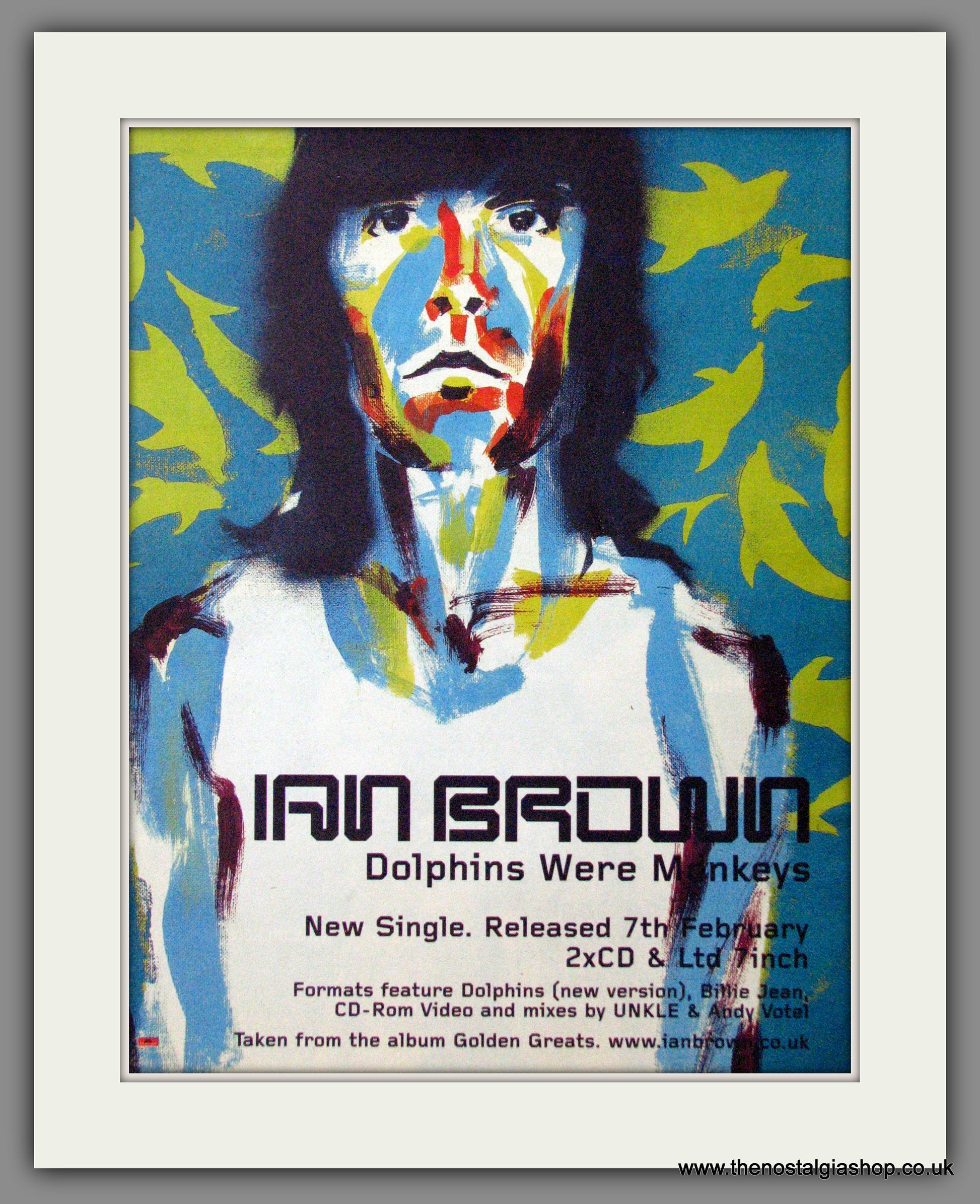 Ian Brown. Dolphins Were Monkeys. Original Advert 2000 (ref AD12128). Presented and supplied in a cream bevel cut mount with backing card and clear bag. Ready to fit in a 20x16 inch frame. The mounted advert will be posted via courier and well packed - protected with a sheet of hardboard to keep it rigid. Any questions or enquiries, please get in touch, we are here to help! All our adverts, unless clearly stated are originals from the date shown. They make excellent pieces of wall art and stunning gifts. Many are rare and hard to find and once sold, may not be replaced. Remember you are buying a piece of history. Website watermark is not on original.
