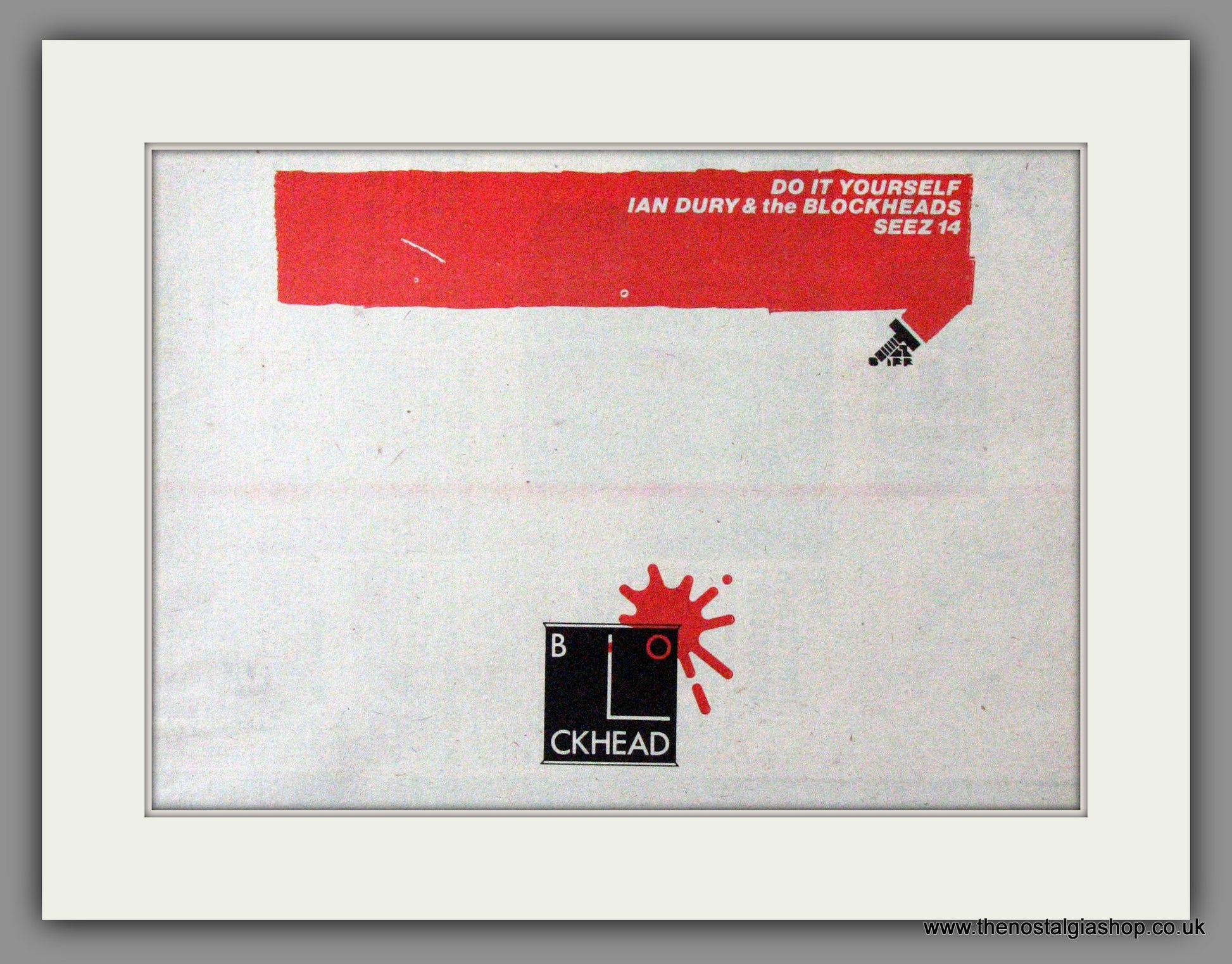 Ian Dury and The Blockheads. Do It Yourself. This is a classic Original Vintage Advert 1979. Presented and Supplied in a cream, bevel cut mount with backing card and clear bag. Ready to fit in 14 x 11 inch frame. The mounted advert will be posted via courier and well packed - protected with a sheet of hardboard to keep it rigid. Any questions or inquiries, please get in touch, we are here to help! All our adverts, unless clearly stated are Originals from the date shown. They make excellent pieces of wall art and stunning gifts. Many are rare and hard to find and once sold, may not be replaced. Remember you are buying a piece of history. Website watermark is not on original. Punk, New Wave, Pub Rock.