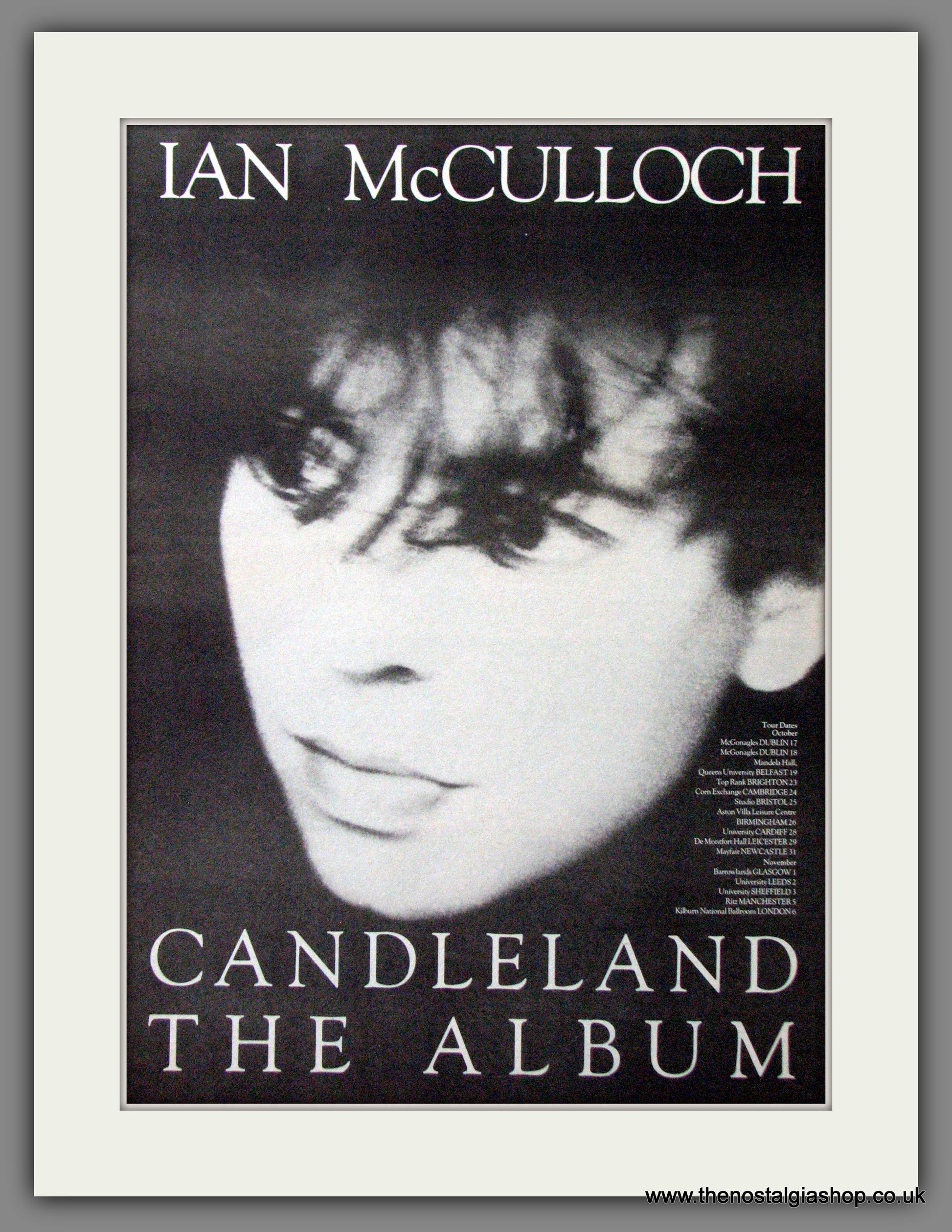 Ian McCulloch. Candleland. Original Advert 1989 (ref AD12153). Presented and supplied in a cream bevel cut mount with backing card and clear bag. Ready to fit in a 20x16 inch frame. The mounted advert will be posted via courier and well packed - protected with a sheet of hardboard to keep it rigid. Any questions or enquiries, please get in touch, we are here to help! All our adverts, unless clearly stated are originals from the date shown. They make excellent pieces of wall art and stunning gifts. Many are rare and hard to find and once sold, may not be replaced. Remember you are buying a piece of history. Website watermark is not on original.