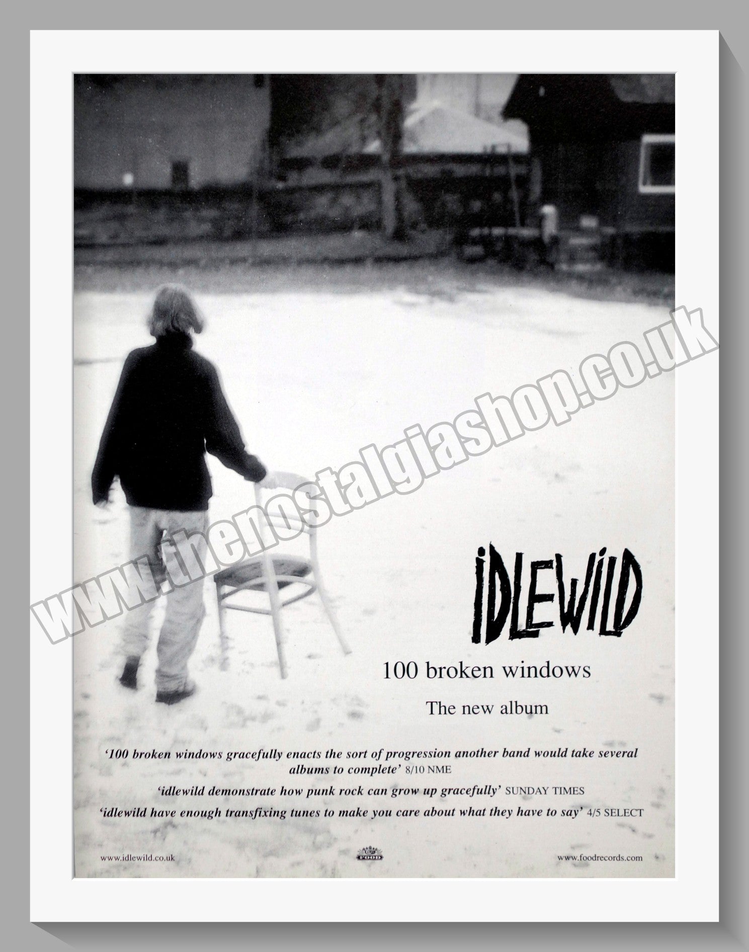 Idlewild 100 Broken Windows. Original Vintage Advert 2000. Presented and Supplied in a cream, bevel cut mount with backing card and clear bag. Ready to fit in 14 x 11 inch frame. The mounted advert will be posted via courier and well packed - protected with a sheet of hardboard to keep it rigid. Any questions or inquiries, please get in touch, we are here to help! All our adverts, unless clearly stated are Originals from the date shown. They make excellent pieces of wall art and stunning gifts. Many are rare and hard to find and once sold, may not be replaced. Remember you are buying a piece of history. Website watermark is not on original.
