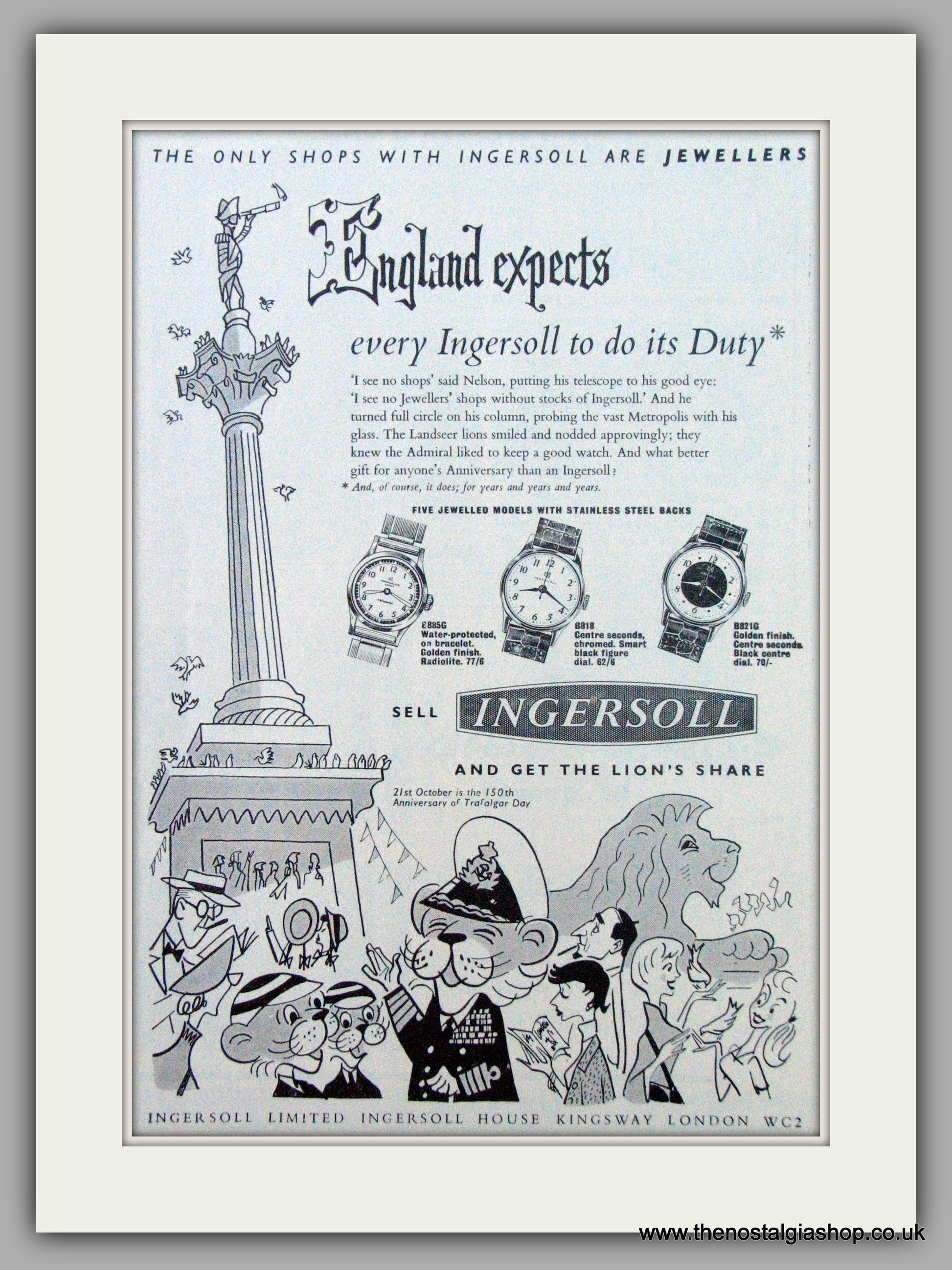 Ingersoll Watches. England Expects! Original Advert 1955. (ref AD7228)
