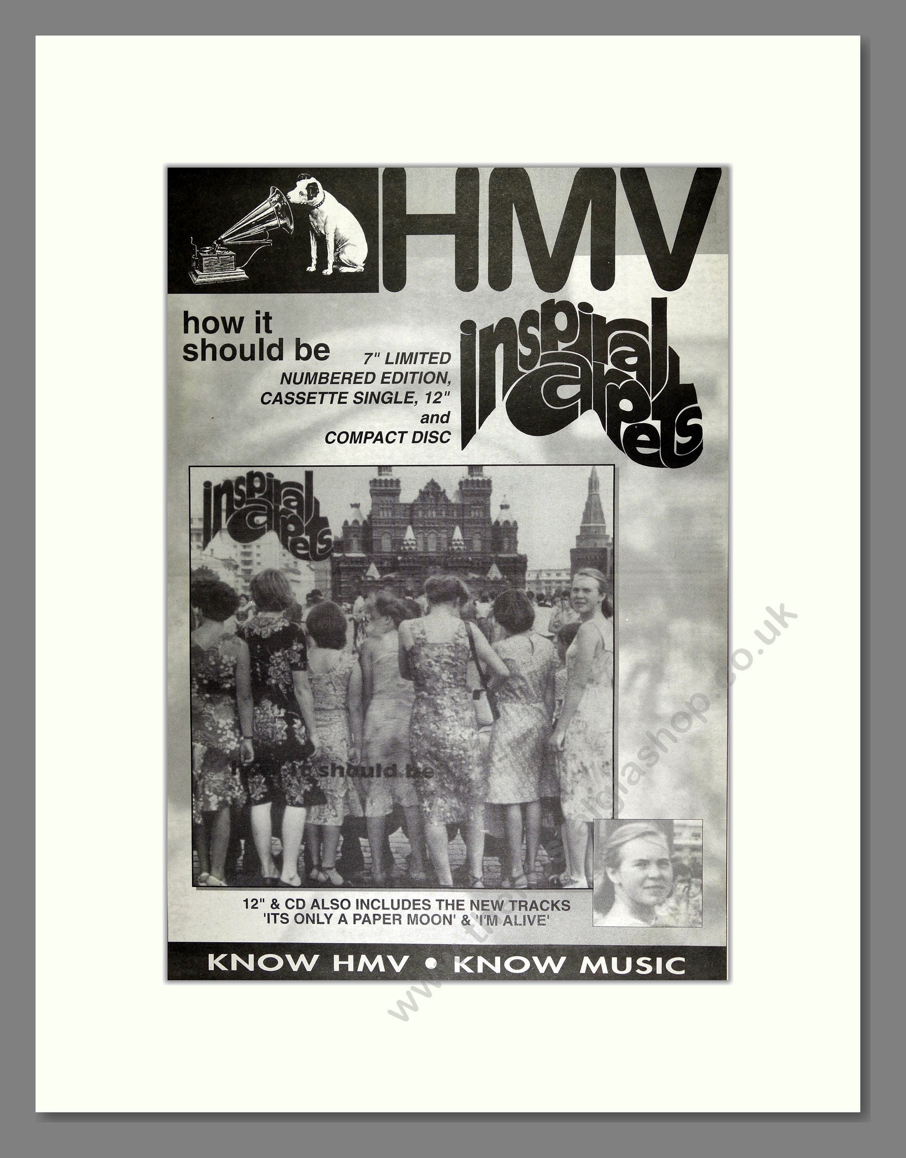 Inspiral Carpets - How It Should Be. Vintage Advert. This is a large classic original advert from 1993. Presented and supplied in a cream bevel cut mount with backing card and clear bag. Ready to fit in a 20x16 inch frame. The mounted advert will be posted via courier and well packed - protected with a sheet of hardboard to keep it rigid. Any questions or enquiries, please get in touch, we are here to help! All our adverts, unless clearly stated are originals from the date shown. They make excellent pieces of wall art and stunning gifts. Many are rare and hard to find and once sold, may not be replaced. Remember you are buying a piece of history. Website watermark is not on original.