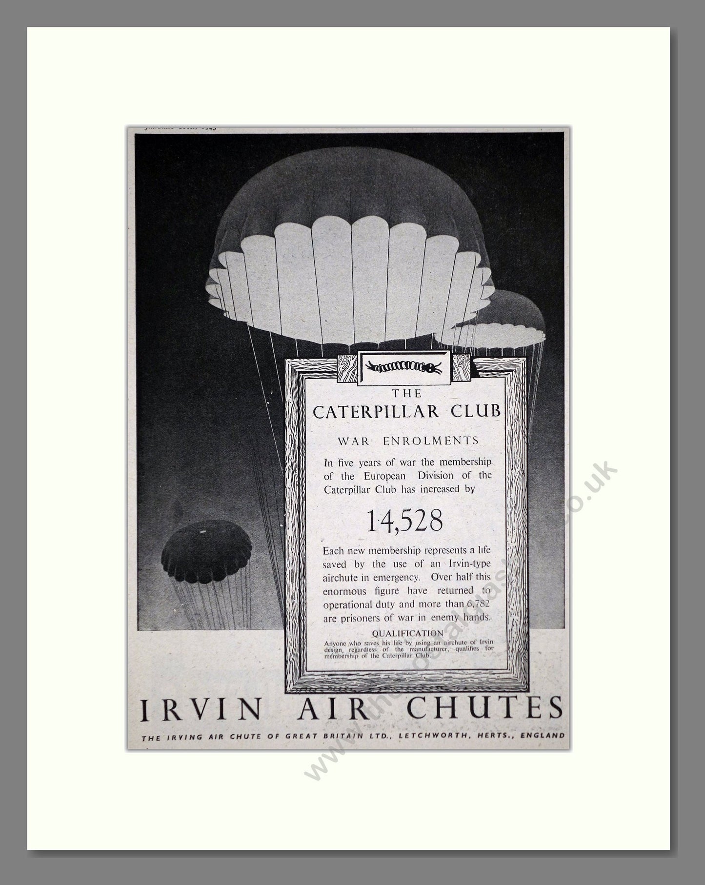 Irvin Air Chutes - Caterpillar Club. Vintage Advert 1945 (ref AD62655)