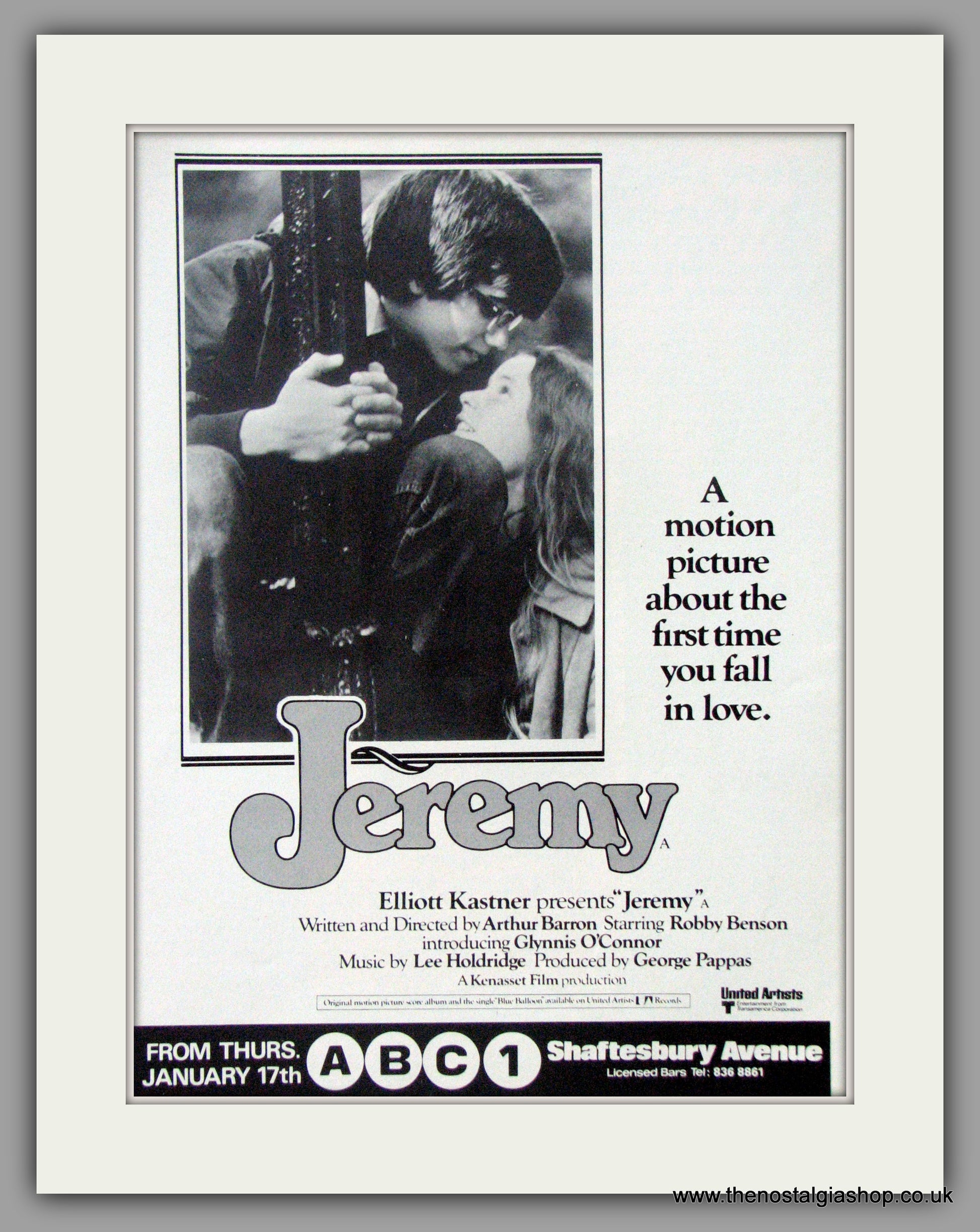 Jeremy-Robby Benson, Glynnis O'Connor. Classic Original advert 1974. Presented in cream bevel cut mount with backing card and clear bag. Ready to fit in 14 x 11 inch frame. Want it framing? If so, buy this then go to Frames Available Category. Click to buy on the suitable frame and we will do the rest. All our adverts, unless clearly stated are Originals from the date shown. They make excellent pieces of wall art and stunning gifts. Many are rare and hard to find and once sold, may not be replaced. Remember you are buying a piece of history. Website watermark is not on original. Australian Rock.