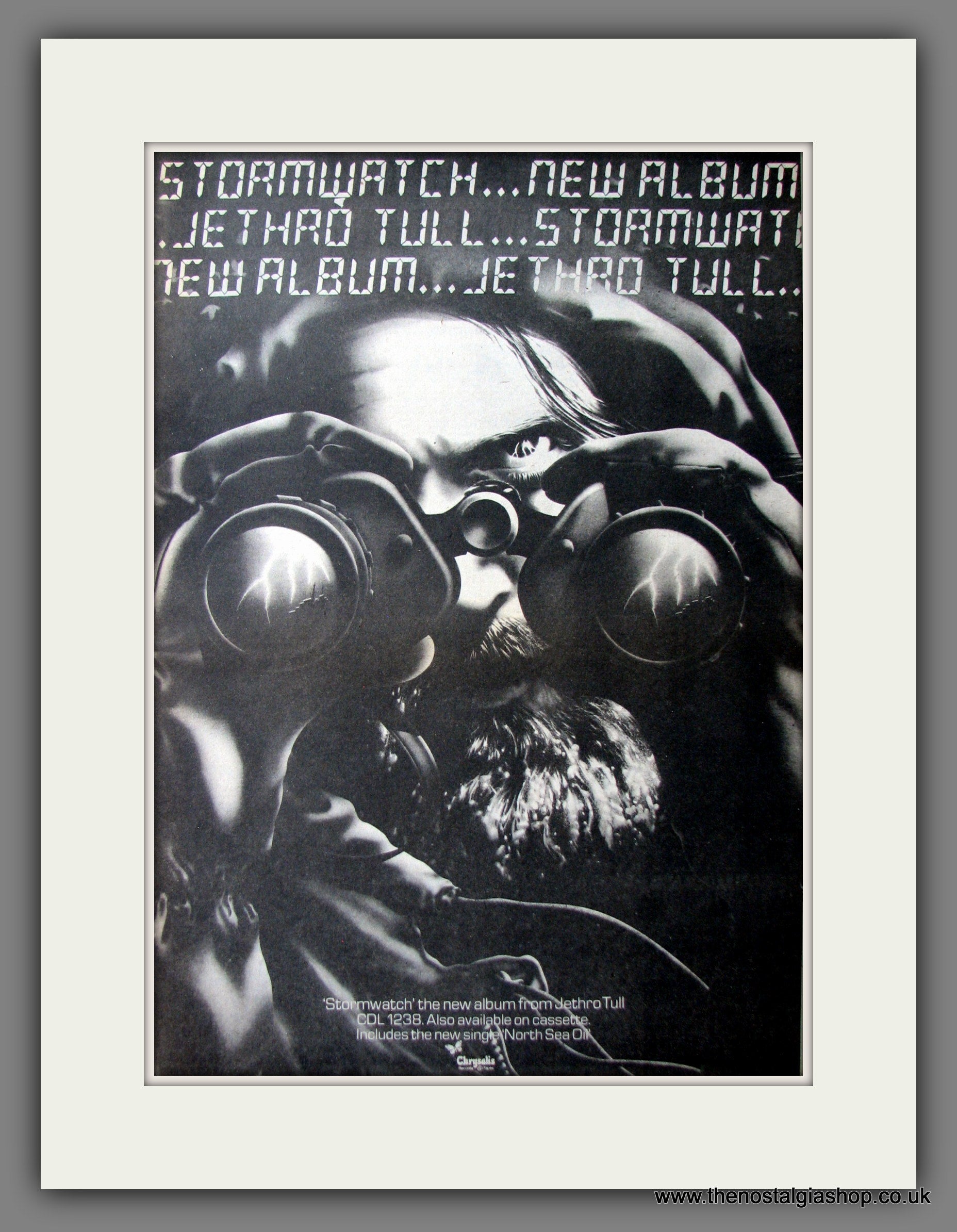 Jethro Tull Storm Watch. Original Advert 1979 (ref AD12567). Presented and supplied in a cream bevel cut mount with backing card and clear bag. Ready to fit in a 20x16 inch frame. The mounted advert will be posted via courier and well packed - protected with a sheet of hardboard to keep it rigid. Any questions or enquiries, please get in touch, we are here to help! All our adverts, unless clearly stated are originals from the date shown. They make excellent pieces of wall art and stunning gifts. Many are rare and hard to find and once sold, may not be replaced. Remember you are buying a piece of history. Website watermark is not on original.