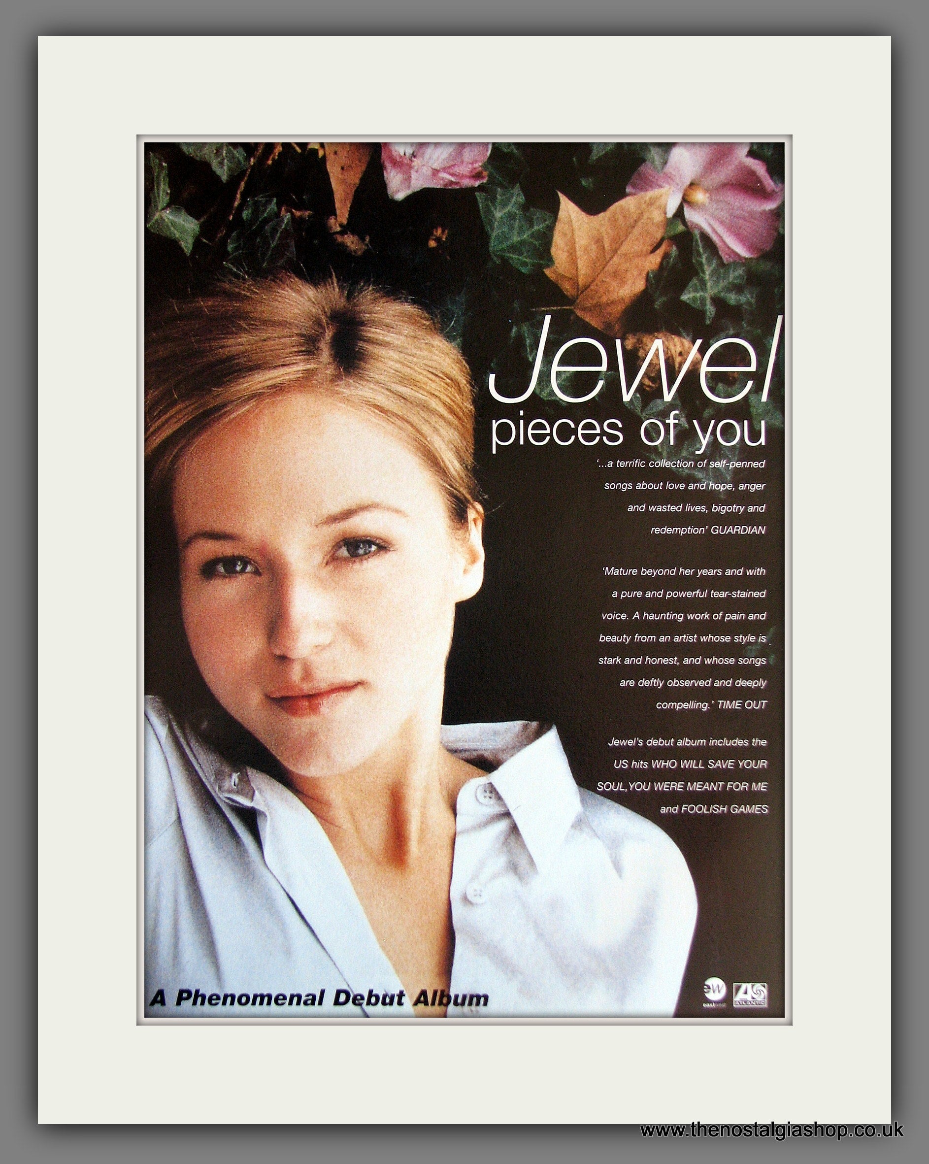 Jewel Pieces Of You. Vintage Advert. Classic Original Advert 1998. Presented and Supplied in a cream bevel cut mount with backing card and display bag. Ready to fit in 14 x 11 inch frame. Want it framing? If so, buy this then go to Frames Available Category. Click to buy on the suitable frame and we will do the rest. All our adverts, unless clearly stated are Originals from the date shown. They make excellent pieces of wall art and stunning gifts. Many are rare and hard to find and once sold, may not be replaced. Remember you are buying a piece of history. Website watermark is not on original.