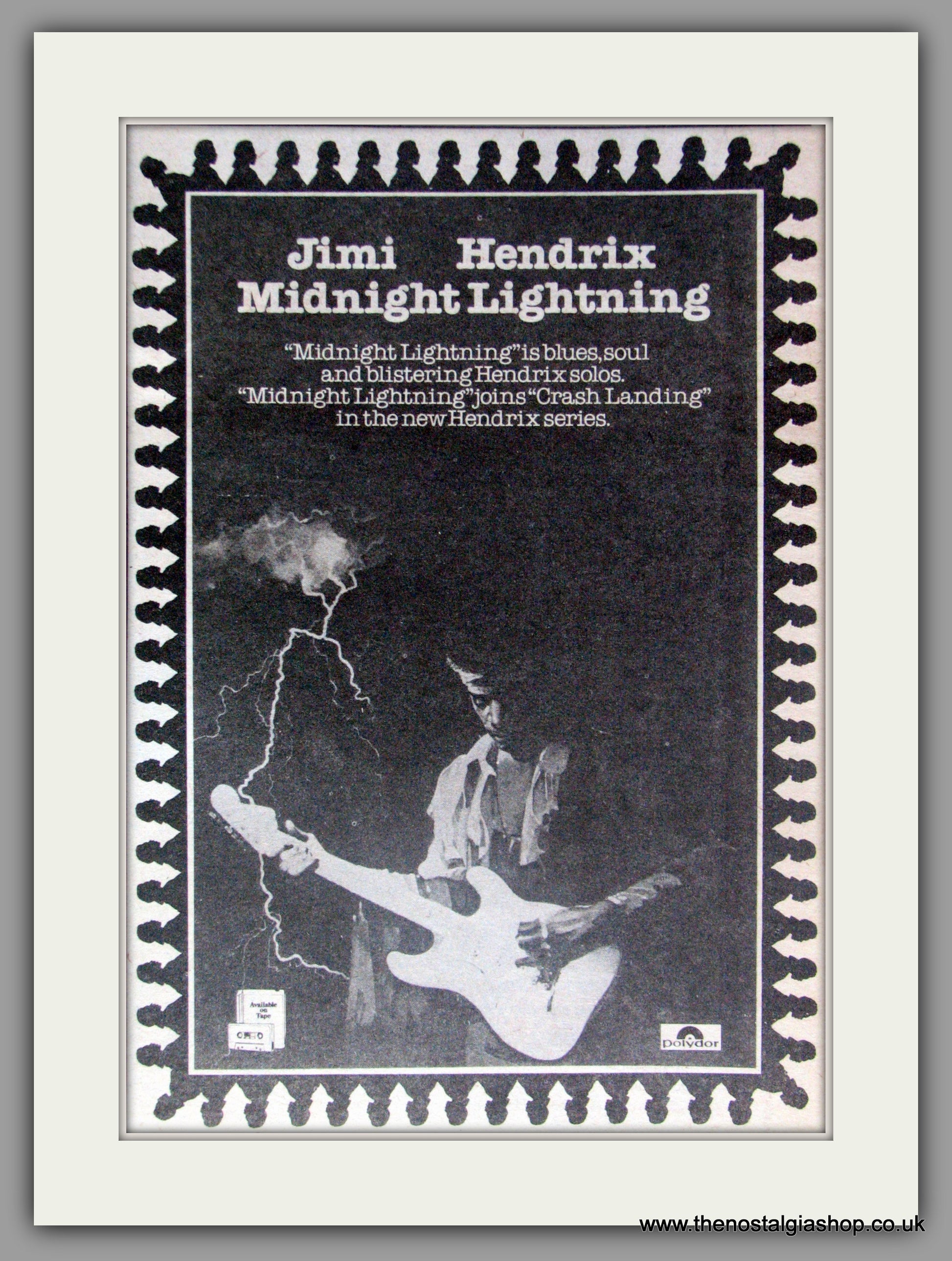 Jimi Hendrix. Midnight Lightning. Vintage Advert. Classic original advert 1975. Presented in cream bevel cut mount with backing card and display bag. Ready to fit in 14 x 11 inch frame. Want it framing? If so, buy this then go to Frames Available Category. Click to buy on the suitable frame and we will do the rest. All our adverts, unless clearly stated are Originals from the date shown. They make excellent pieces of wall art and stunning gifts. Many are rare and hard to find and once sold, may not be replaced. Remember you are buying a piece of history. Website watermark is not on original.