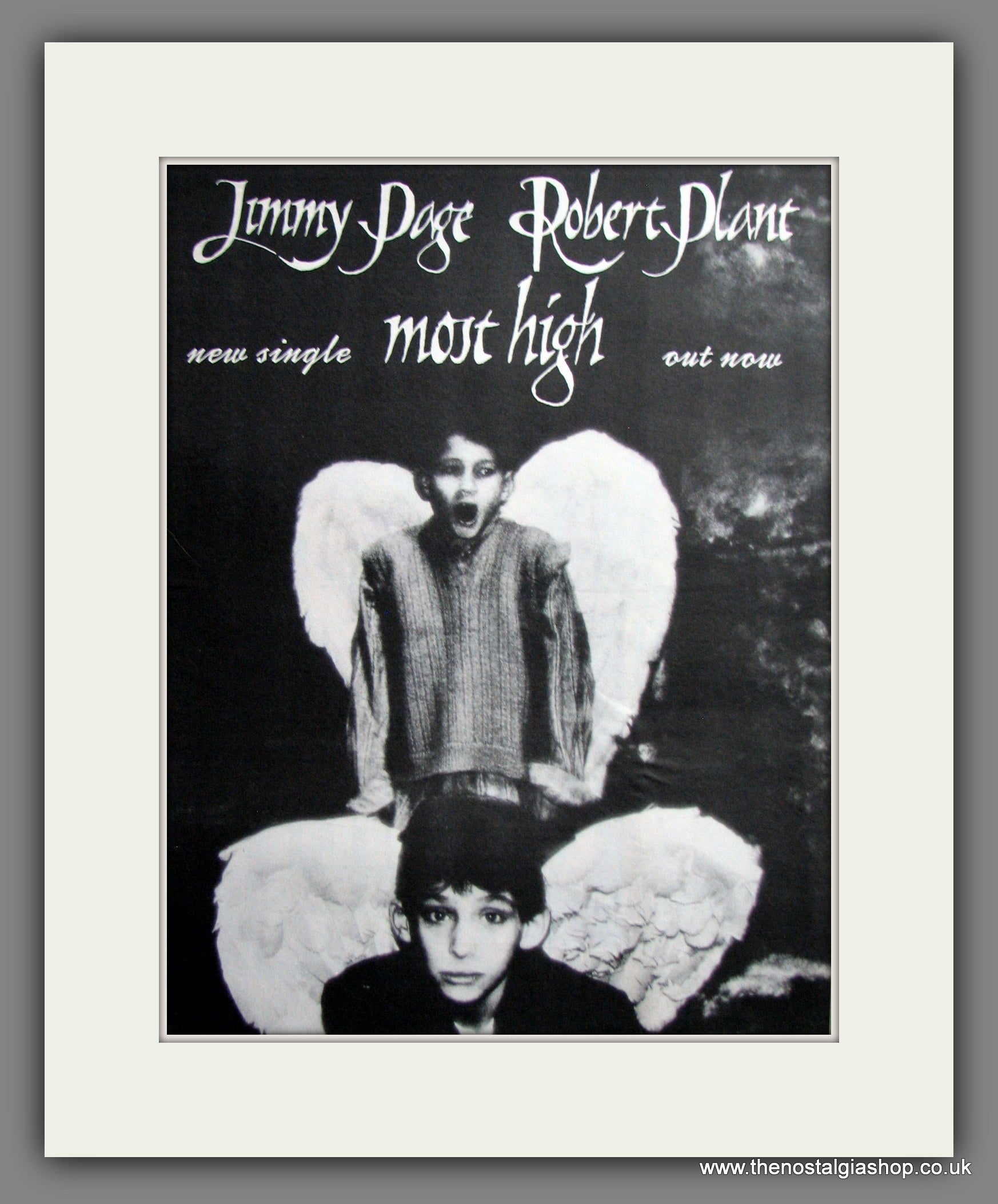 Jimmy Page Robert Plant, Most High. Original Advert 1998 (ref AD12416). Presented and supplied in a cream bevel cut mount with backing card and clear bag. Ready to fit in a 20x16 inch frame. The mounted advert will be posted via courier and well packed - protected with a sheet of hardboard to keep it rigid. Any questions or enquiries, please get in touch, we are here to help! All our adverts, unless clearly stated are originals from the date shown. They make excellent pieces of wall art and stunning gifts. Many are rare and hard to find and once sold, may not be replaced. Remember you are buying a piece of history. Website watermark is not on original.