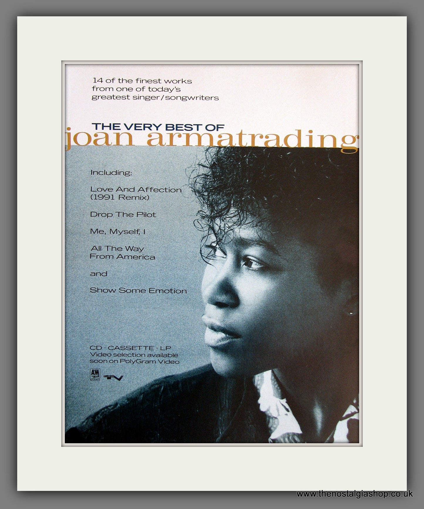Joan Armatrading The Best Of. Vintage Advert. Classic Original Advert 1991. Presented and Supplied in a cream bevel cut mount with backing card and display bag. Ready to fit in 14 x 11 inch frame. Want it framing? If so, buy this then go to Frames Available Category. Click to buy on the suitable frame and we will do the rest. All our adverts, unless clearly stated are Originals from the date shown. They make excellent pieces of wall art and stunning gifts. Many are rare and hard to find and once sold, may not be replaced. Remember you are buying a piece of history. Website watermark is not on original.