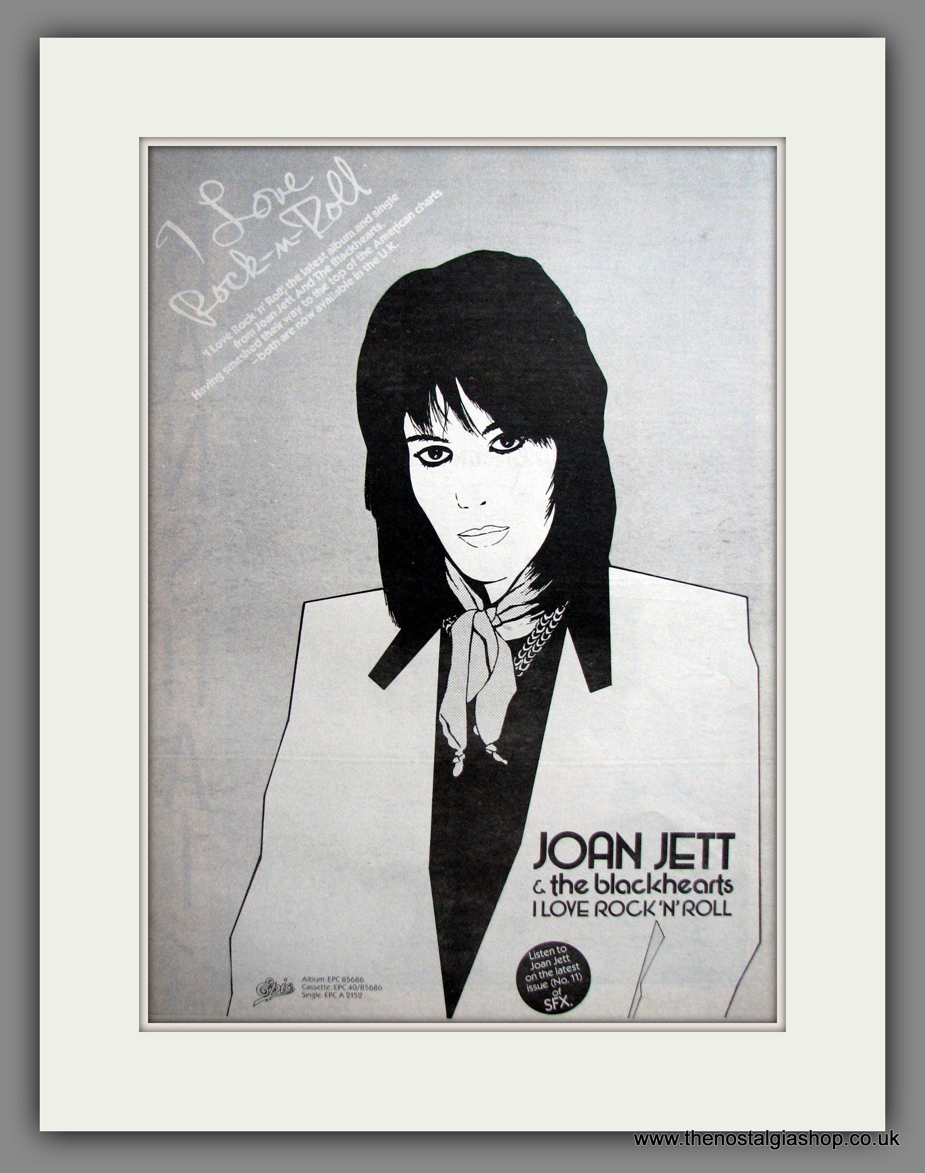 Joan Jett & The Blackhearts I Love Rock-n-Roll. Original Advert 1982 (ref AD12498). Presented and supplied in a cream bevel cut mount with backing card and clear bag. Ready to fit in a 20x16 inch frame. The mounted advert will be posted via courier and well packed - protected with a sheet of hardboard to keep it rigid. Any questions or enquiries, please get in touch, we are here to help! All our adverts, unless clearly stated are originals from the date shown. They make excellent pieces of wall art and stunning gifts. Many are rare and hard to find and once sold, may not be replaced. Remember you are buying a piece of history. Website watermark is not on original.