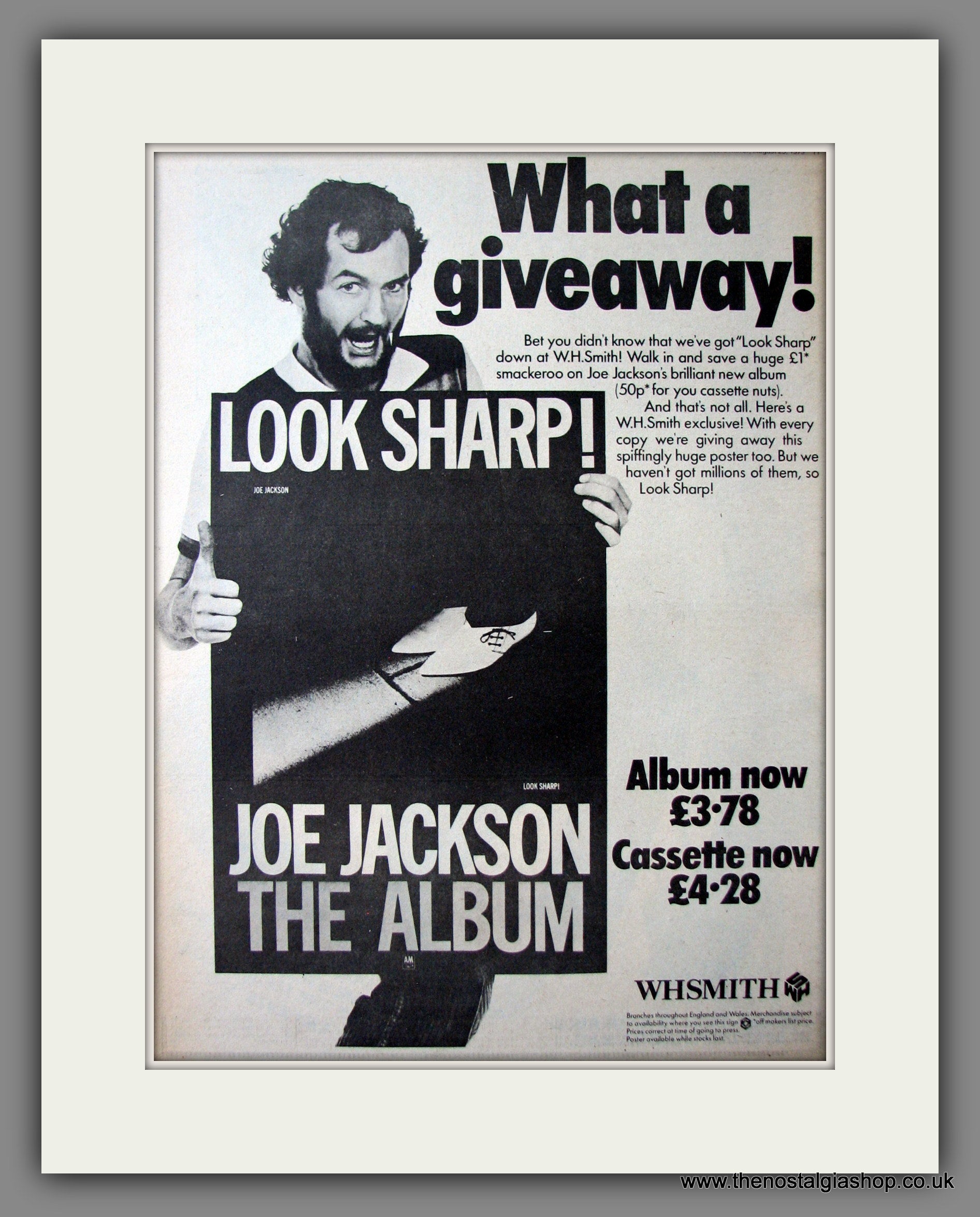 Joe Jackson Look Sharp. Original Advert 1979 (ref AD12573). Presented and supplied in a cream bevel cut mount with backing card and clear bag. Ready to fit in a 20x16 inch frame. The mounted advert will be posted via courier and well packed - protected with a sheet of hardboard to keep it rigid. Any questions or enquiries, please get in touch, we are here to help! All our adverts, unless clearly stated are originals from the date shown. They make excellent pieces of wall art and stunning gifts. Many are rare and hard to find and once sold, may not be replaced. Remember you are buying a piece of history. Website watermark is not on original.