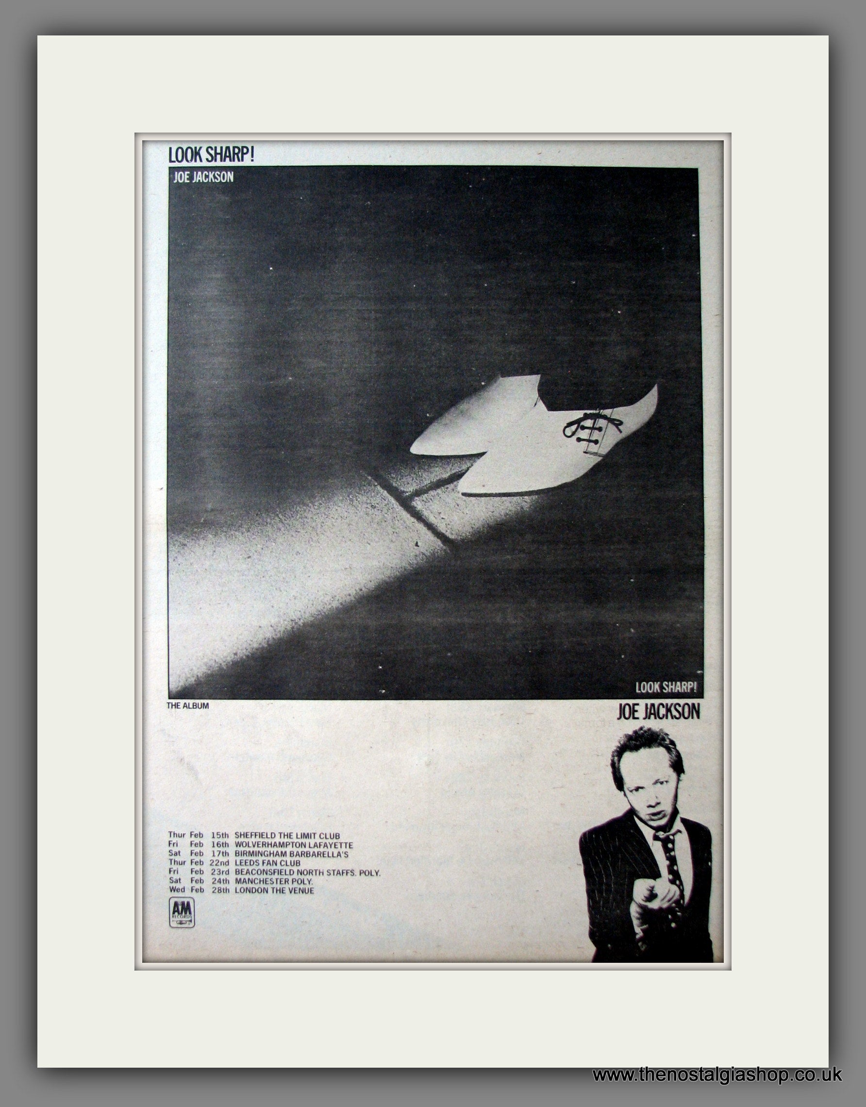 Joe Jackson Look Sharp. Original Advert 1979 (ref AD12574). Presented and supplied in a cream bevel cut mount with backing card and clear bag. Ready to fit in a 20x16 inch frame. The mounted advert will be posted via courier and well packed - protected with a sheet of hardboard to keep it rigid. Any questions or enquiries, please get in touch, we are here to help! All our adverts, unless clearly stated are originals from the date shown. They make excellent pieces of wall art and stunning gifts. Many are rare and hard to find and once sold, may not be replaced. Remember you are buying a piece of history. Website watermark is not on original.