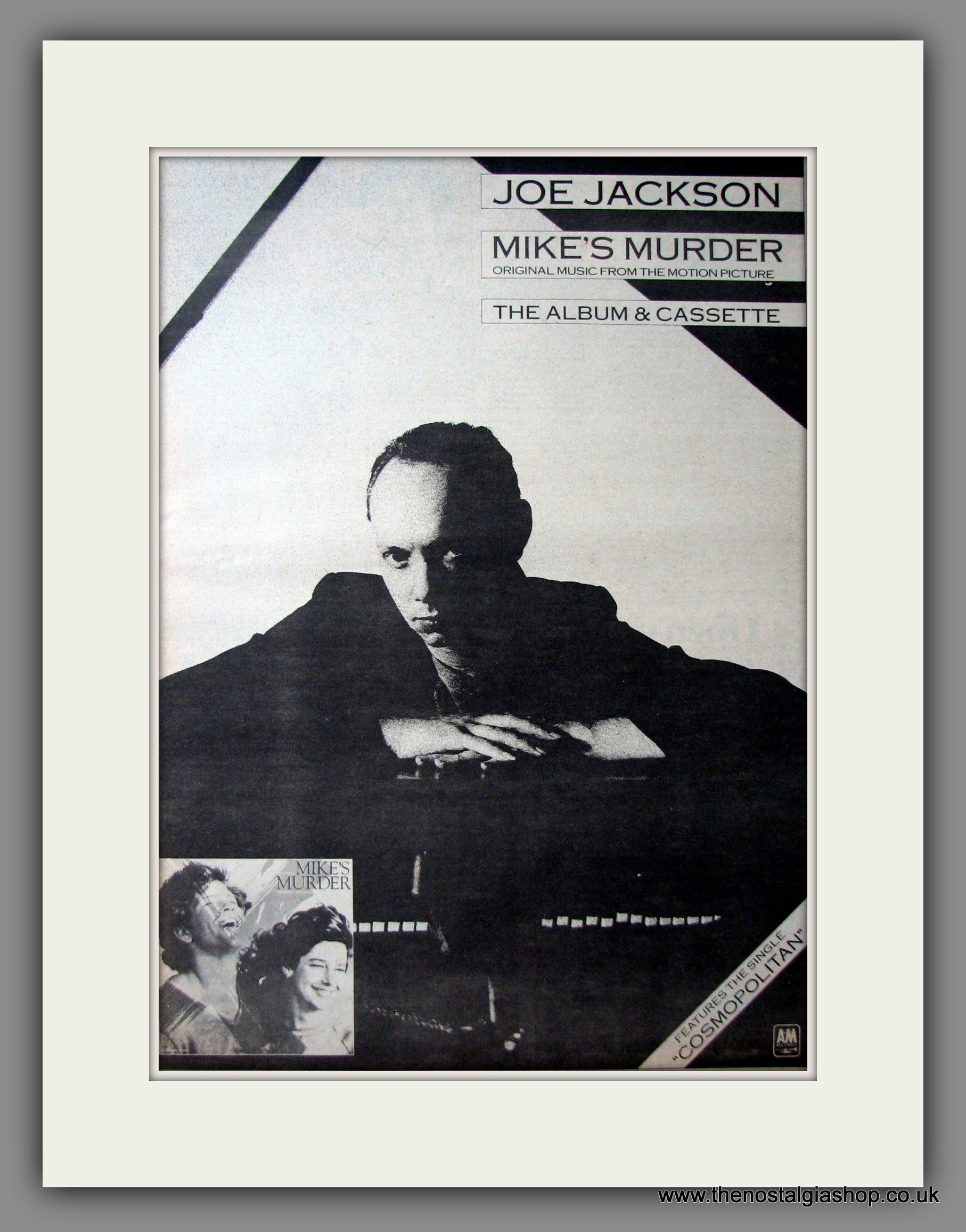 Joe Jackson Mike's Murder. Original Advert 1983 (ref AD12575). Presented and supplied in a cream bevel cut mount with backing card and clear bag. Ready to fit in a 20x16 inch frame. The mounted advert will be posted via courier and well packed - protected with a sheet of hardboard to keep it rigid. Any questions or enquiries, please get in touch, we are here to help! All our adverts, unless clearly stated are originals from the date shown. They make excellent pieces of wall art and stunning gifts. Many are rare and hard to find and once sold, may not be replaced. Remember you are buying a piece of history. Website watermark is not on original.