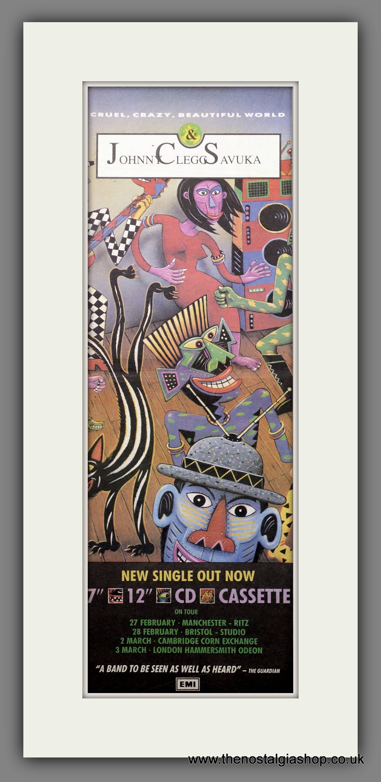 Johnny Clegg & Savuka Cruel,Crazy,Beautiful World. This is a large Original Vintage Advert 1990. Presented and Supplied in a cream, bevel cut mount with backing card and clear bag. Ready to fit in 20 x 10 inch frame. The mounted advert will be posted via courier and well packed - protected with a sheet of hardboard to keep it rigid. Any questions or inquiries, please get in touch, we are here to help! All our adverts, unless clearly stated are Originals from the date shown. They make excellent pieces of wall art and stunning gifts. Many are rare and hard to find and once sold, may not be replaced. Remember you are buying a piece of history. Website watermark is not on original.