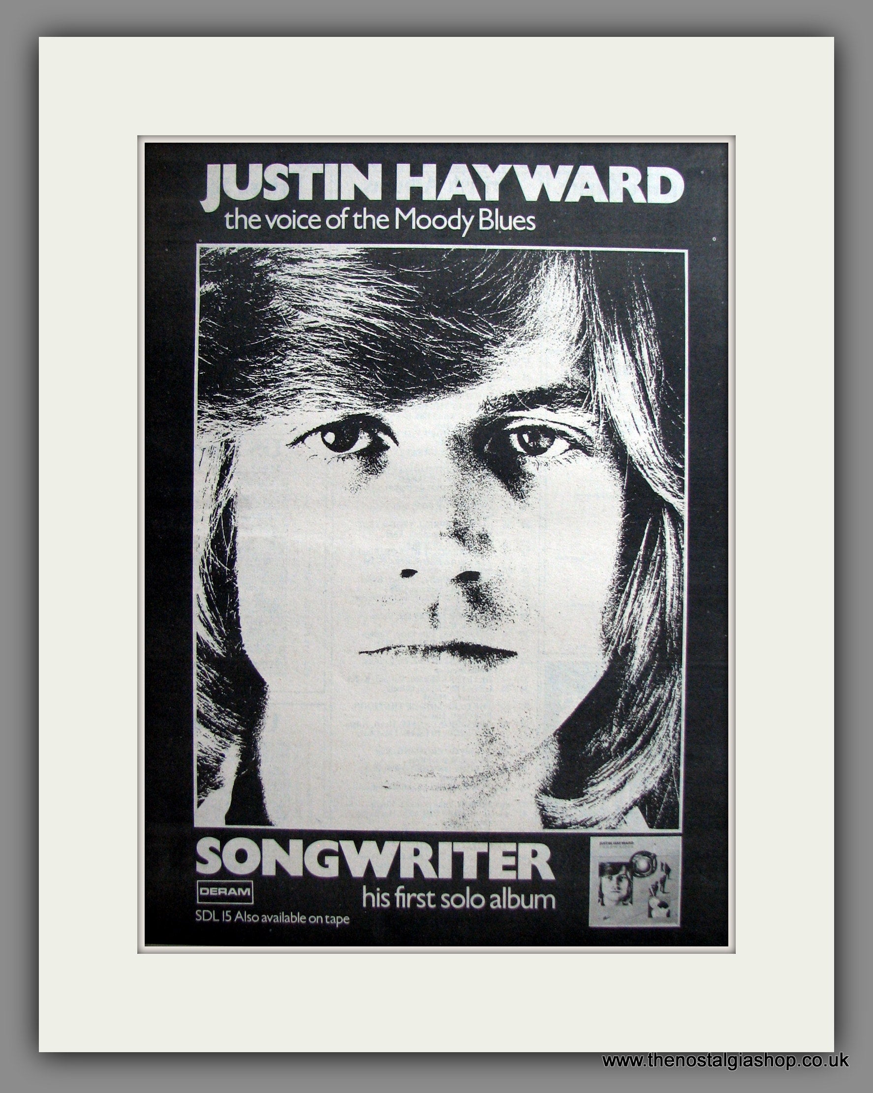 Justin Hayward. Songwriter. Debut Album. Original Advert 1977 (ref AD12303). Presented and supplied in a cream bevel cut mount with backing card and clear bag. Ready to fit in a 20x16 inch frame. The mounted advert will be posted via courier and well packed - protected with a sheet of hardboard to keep it rigid. Any questions or enquiries, please get in touch, we are here to help! All our adverts, unless clearly stated are originals from the date shown. They make excellent pieces of wall art and stunning gifts. Many are rare and hard to find and once sold, may not be replaced. Remember you are buying a piece of history. Website watermark is not on original.