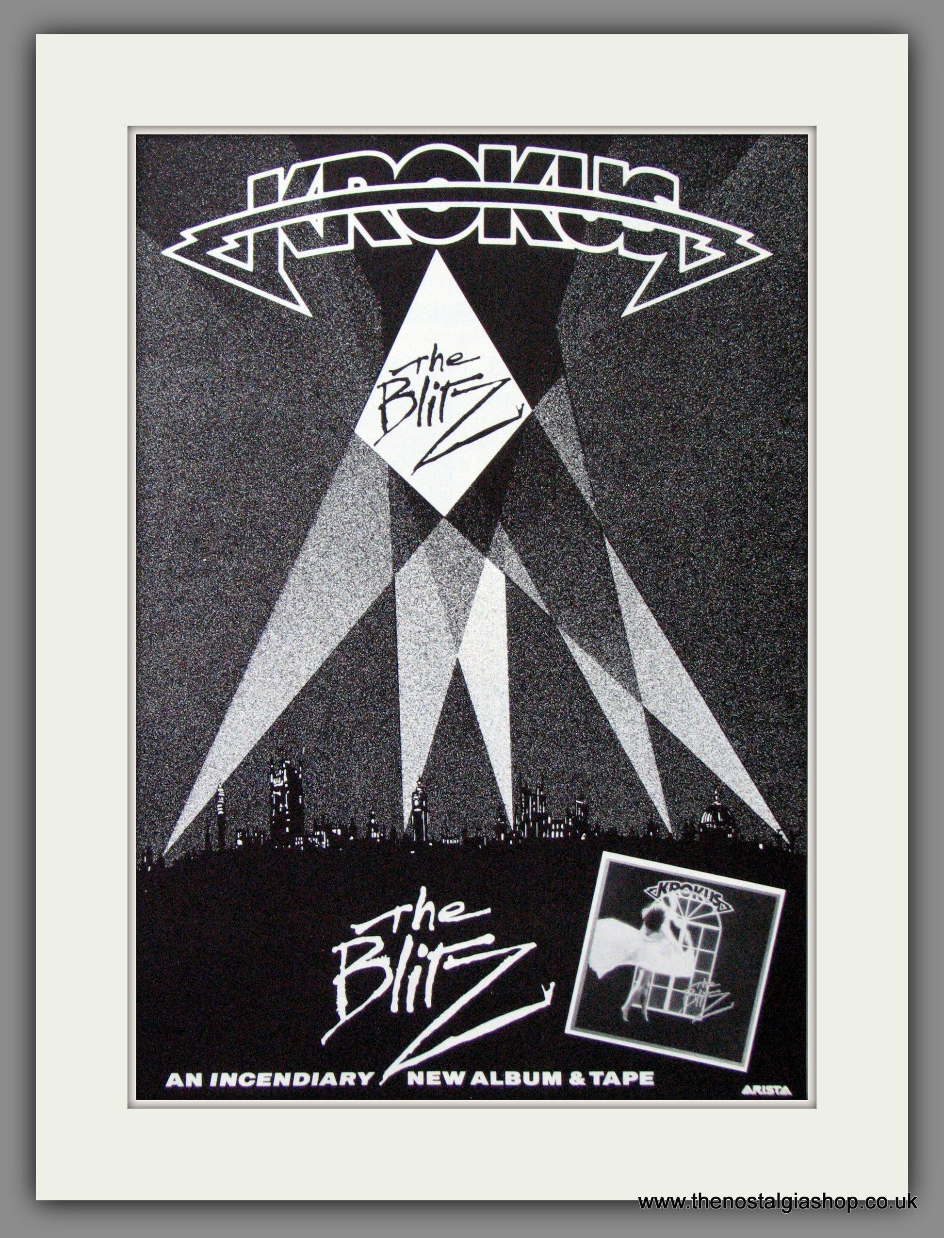 Krokus. The Blitz. Classic Original advert 1984. Presented and Supplied in a cream bevel cut mount with backing card and clear bag. Ready to fit in 14 x 11 inch frame. Want it framing? If so, buy this then go to Frames Available Category. Click to buy on the suitable frame and we will do the rest. All our adverts, unless clearly stated are Originals from the date shown. They make excellent pieces of wall art and stunning gifts. Many are rare and hard to find and once sold, may not be replaced. Remember you are buying a piece of history. Website watermark is not on original.
