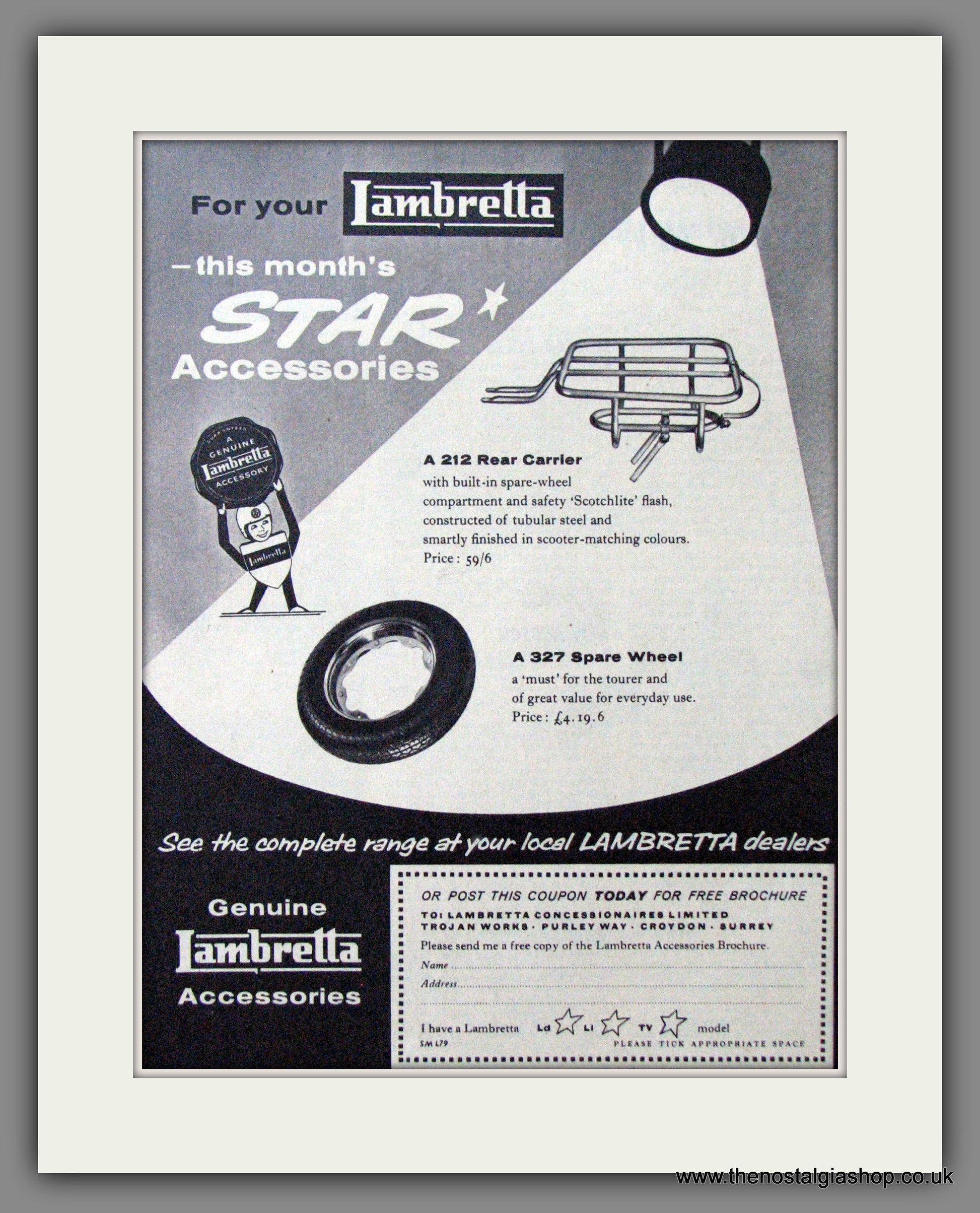 Lambretta Spare Wheel, Rear Carrier.. Original advert 1960 (ref AD52517)