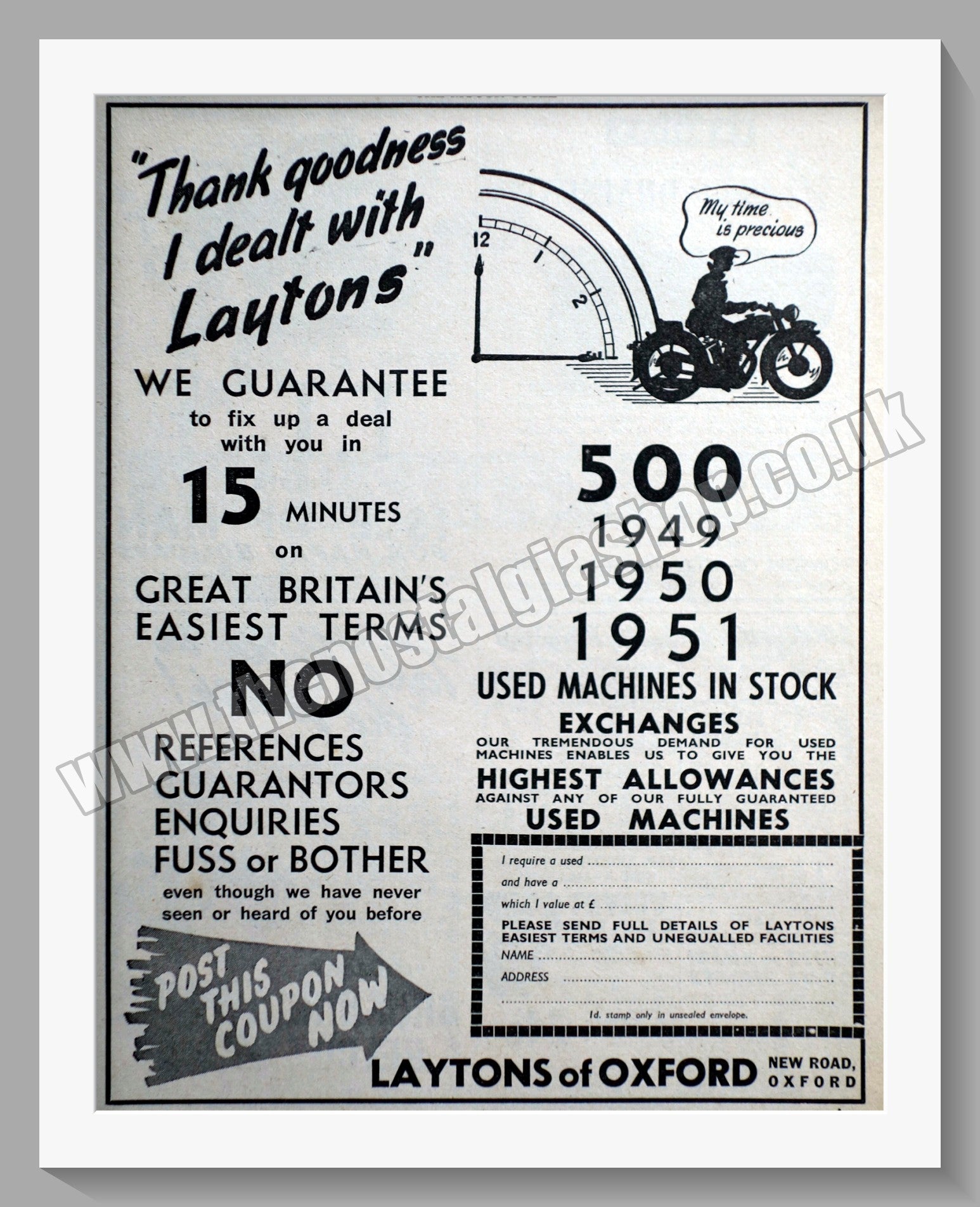 Laytons Of Oxford Motorcycle Dealers. Original Advert 1951 (ref AD57400)