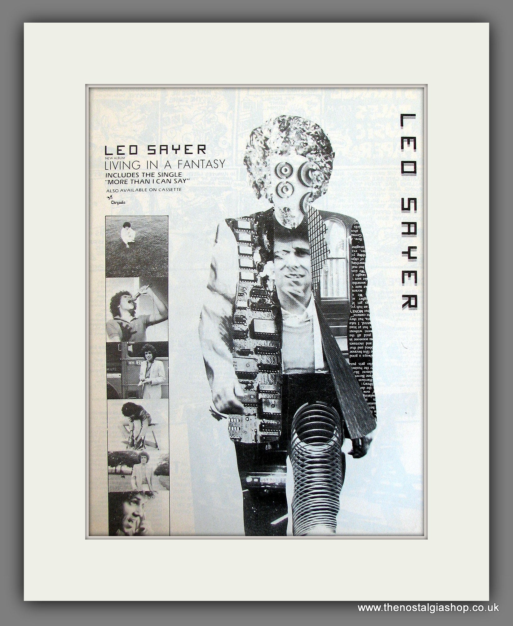 Leo Sayer Living In A Fantasy. Classic Original advert 1980. Presented and supplied in a cream bevel cut mount with backing card and clear bag. Ready to fit in 14 x 11 inch frame. The mounted advert will be posted via courier and well packed - protected with a sheet of hardboard to keep it rigid. Any questions or inquiries, please get in touch, we are here to help! All our adverts, unless clearly stated are Originals from the date shown. They make excellent pieces of wall art and stunning gifts. Many are rare and hard to find and once sold, may not be replaced. Remember you are buying a piece of history. Website watermark is not on original.