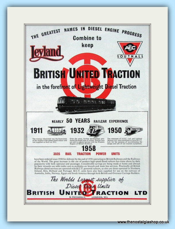 Leyland British Traction. The greatest names in diesel engine progress.Classic original advert 1957.Presented in cream bevel cut mount with backing card and clear bag. Each is ready to fit in 14 x 11 inch frame. Want it framing? If so, buy this then go to Frames Available Category. Click to buy on the suitable frame and we will do the rest. All our adverts, unless clearly stated are Originals from the date shown They make excellent pieces of wall art and stunning gifts. Many are rare and hard to find and once sold, may not be replaced. Remember you are buying a piece of history. Website watermark is not on original.