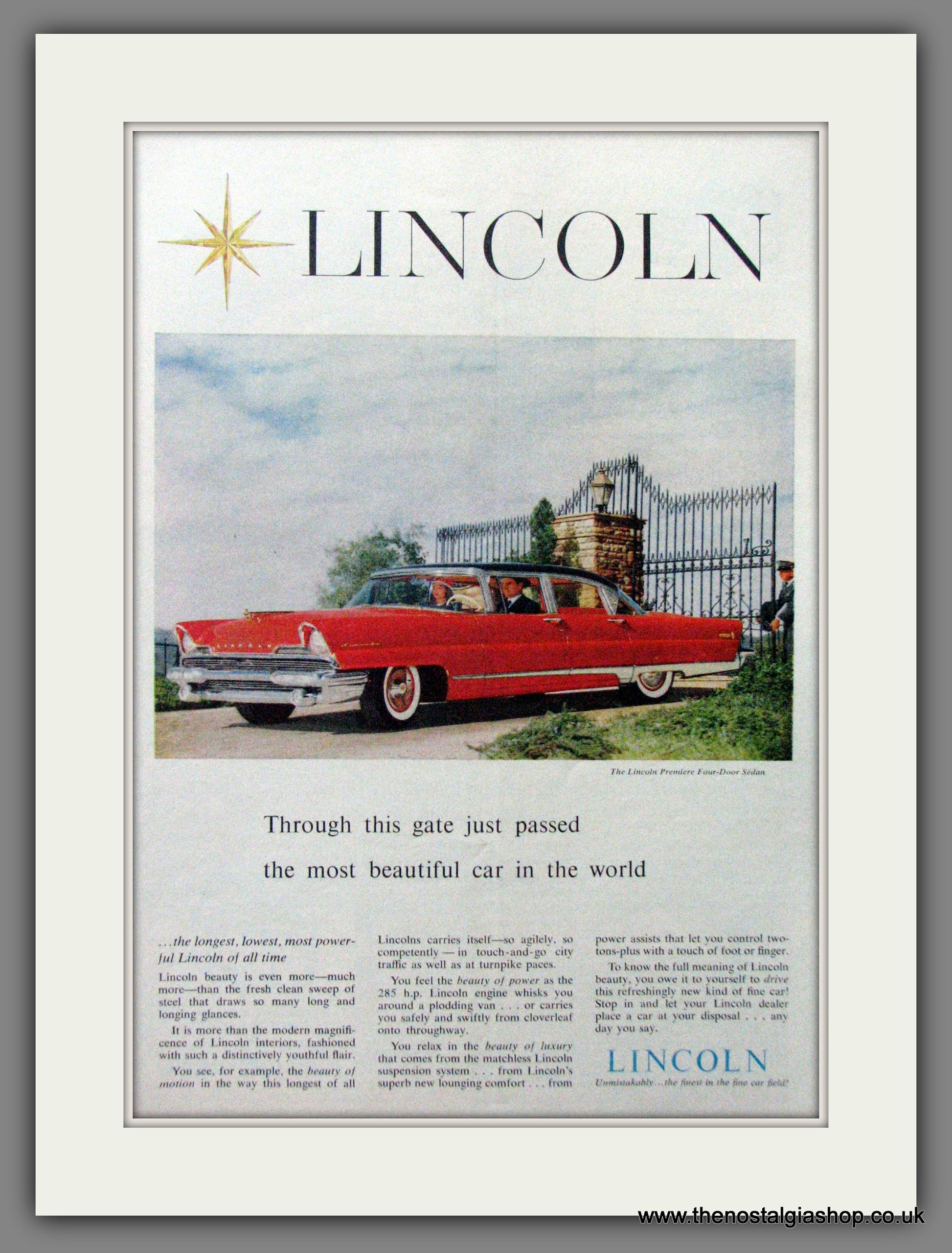 Lincoln Premier Sedan. Vintage Advert. Classic Original American advert 1954. Presented and Supplied in cream bevel cut mount, size 14 x 11 inches with backing card and clear bag. Ready to frame. Want it framing? If so, buy this then go to Frames Available Category. Click to buy on the suitable frame and we will do the rest. All our adverts, unless clearly stated are Originals from the date shown They make excellent pieces of wall art and stunning gifts. Many are rare and hard to find and once sold, may not be replaced. Remember you are buying a piece of history. Website watermark is not on original.