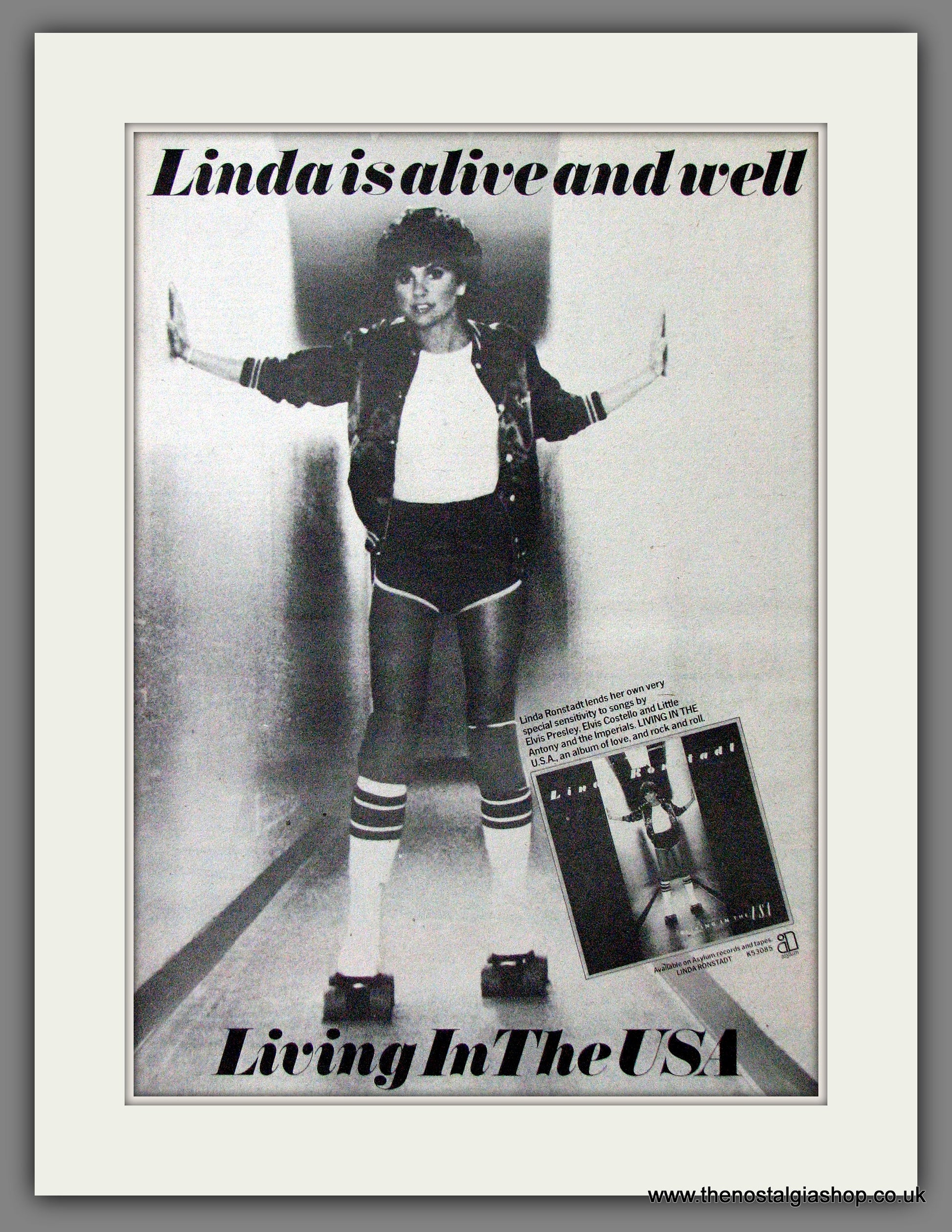 Linda Ronstadt Living In The USA. Original Advert 1978 (ref AD12646). Presented and supplied in a cream bevel cut mount with backing card and clear bag. Ready to fit in a 20x16 inch frame. The mounted advert will be posted via courier and well packed - protected with a sheet of hardboard to keep it rigid. Any questions or enquiries, please get in touch, we are here to help! All our adverts, unless clearly stated are originals from the date shown. They make excellent pieces of wall art and stunning gifts. Many are rare and hard to find and once sold, may not be replaced. Remember you are buying a piece of history. Website watermark is not on original.