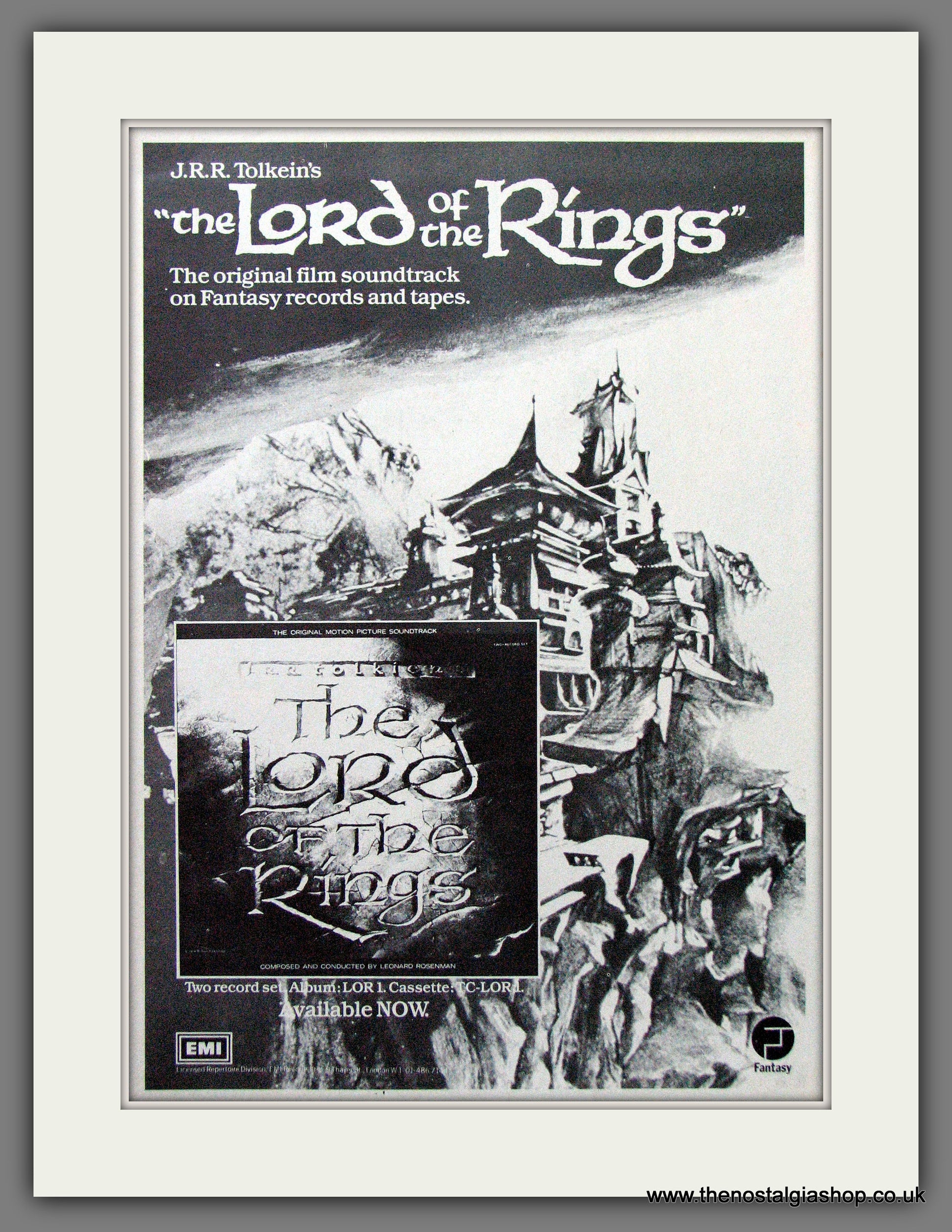 Lord Of The Rings. Film Soundtrack. Vintage Advert. Classic Original advert 1979. Presented and Supplied in a cream bevel cut mount with backing card and display bag. Ready to fit in 14 x 11 inch frame. Want it framing? If so, buy this then go to Frames Available Category. Click to buy on the suitable frame and we will do the rest. All our adverts, unless clearly stated are Originals from the date shown. They make excellent pieces of wall art and stunning gifts. Many are rare and hard to find and once sold, may not be replaced. Remember you are buying a piece of history. Website watermark is not on original.