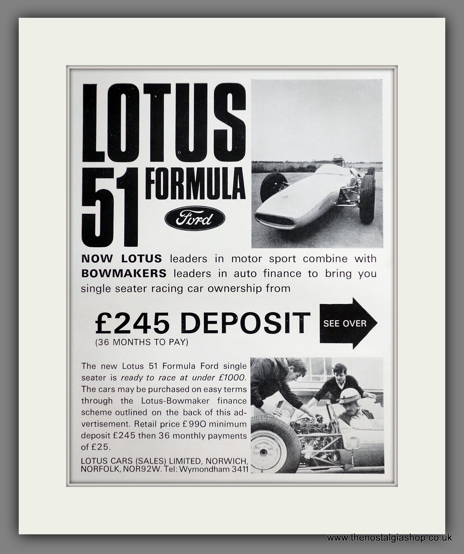 Lotus 51 Formula Ford. 1967 Original Advert (ref AD61142)