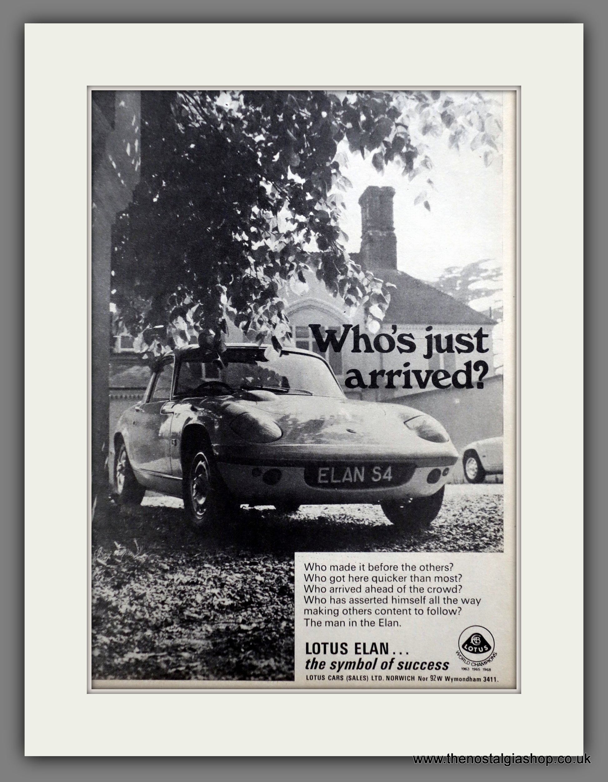 Lotus Elan. Original Advert 1970. Presented and Supplied in a 14 x 11 Inch, cream bevel cut mount with backing card and clear bag. Ready to frame. All our adverts, unless clearly stated are Originals from the date shown They make excellent pieces of wall art and stunning gifts. Many are rare and hard to find and once sold, may not be replaced. Remember you are buying a piece of history. Website watermark is not on original. Lotus Cars Limited.