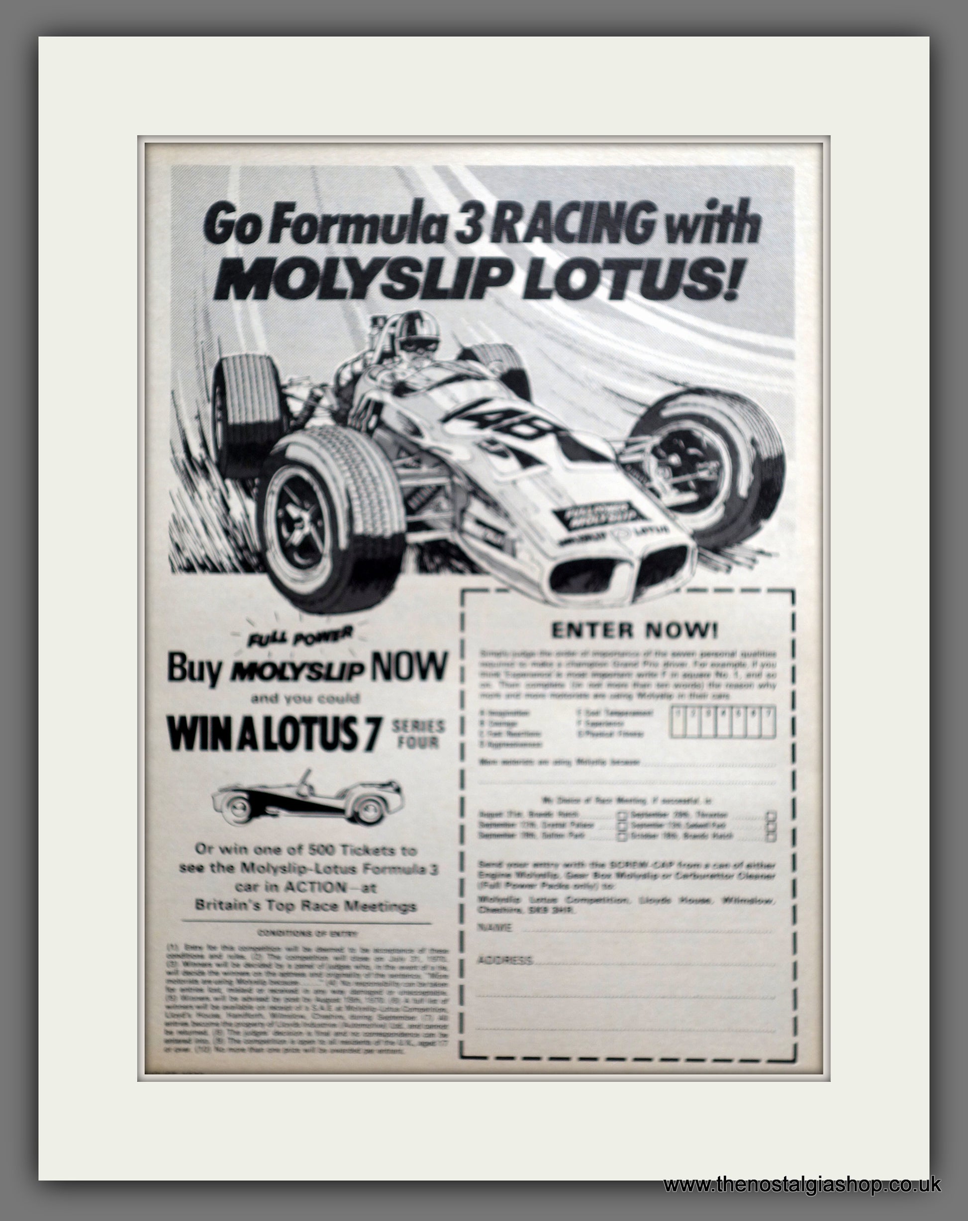 Lotus Formula 3 Racing Molyslip. 1970 Original Advert (ref AD61131)